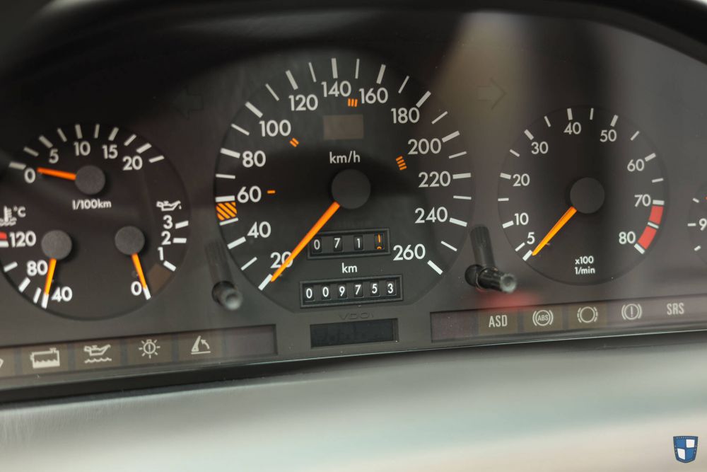 Wow, just 9753 kilometers on this amazing R129 300 SL-24. This 300SL-24 was first registered on the 18th of March 1993 and delivered through Mercedes dealership Antares S.p.A in Parma, northern Italy to Mr. Ciobani from Parma. Ordered in 744 Brilliant Silver over 271 Black leather. Furthermore: