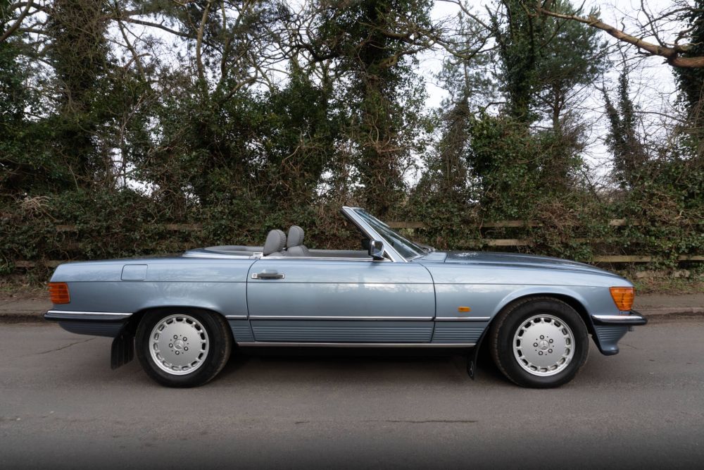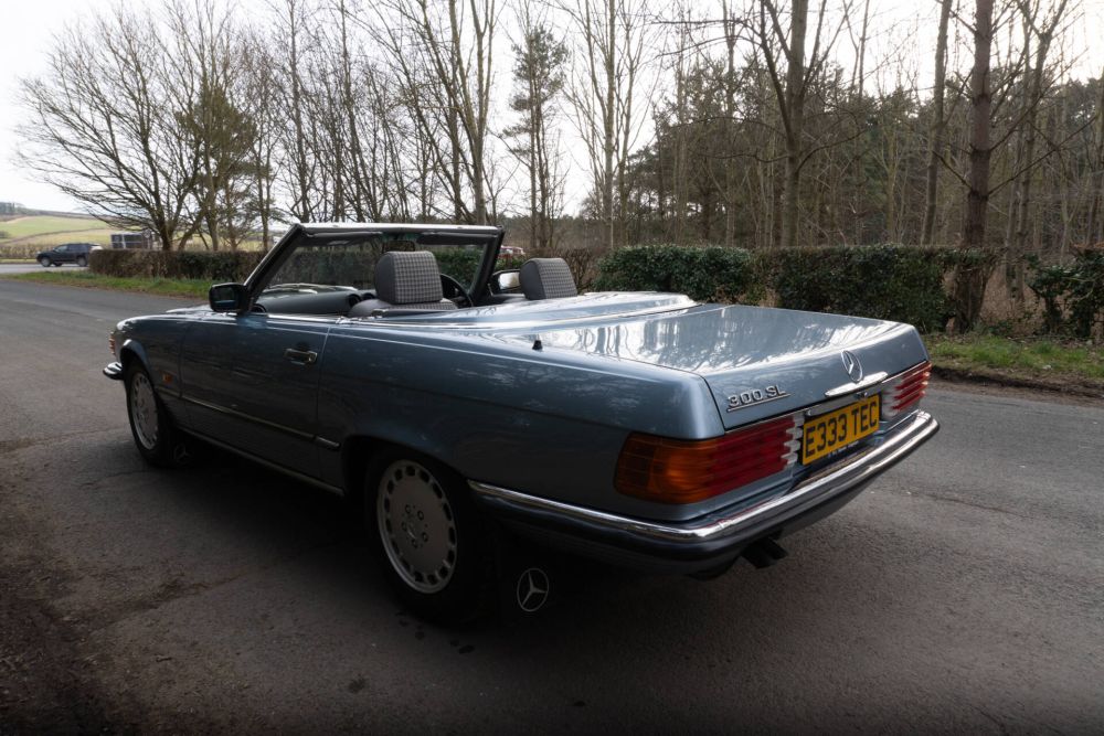 We have known this beautiful Pearl Blue Metallic Mercedes Benz 300SL for over 20 years having sourced the car back in 2004 for close friends of ours. The SL has now covered a warranted 60000 miles from new with an impressive maintenance history and back in 2004 when we last supplied the car it had just 29000 miles. From 2004 to 2021 the SL covered an impressive 31000 miles, often being used for long distance touring between homes in Edinburgh City Centre and Harrogate, and trips to the North Yorkshire East Coast during the finer weather months. To say the car has been enjoyed is an understatement, it has been loved and cherished over the past 21 years but now with a heavy heart, its long term lady owner has made the decision to part with the SL having not used it for the past few years. Now out of indoor, dry storage, the SL is being MOT tested and fully serviced for its next owner.