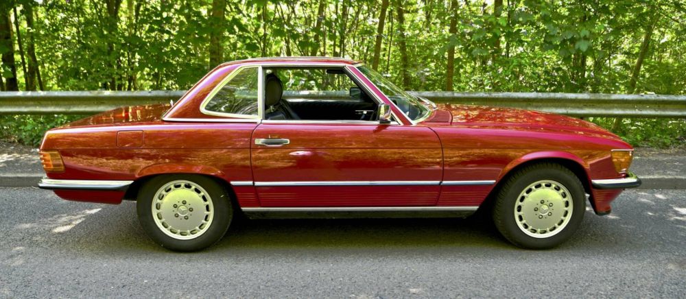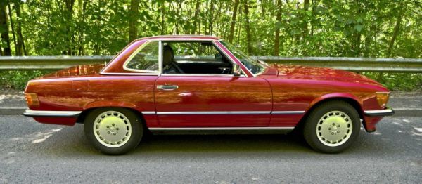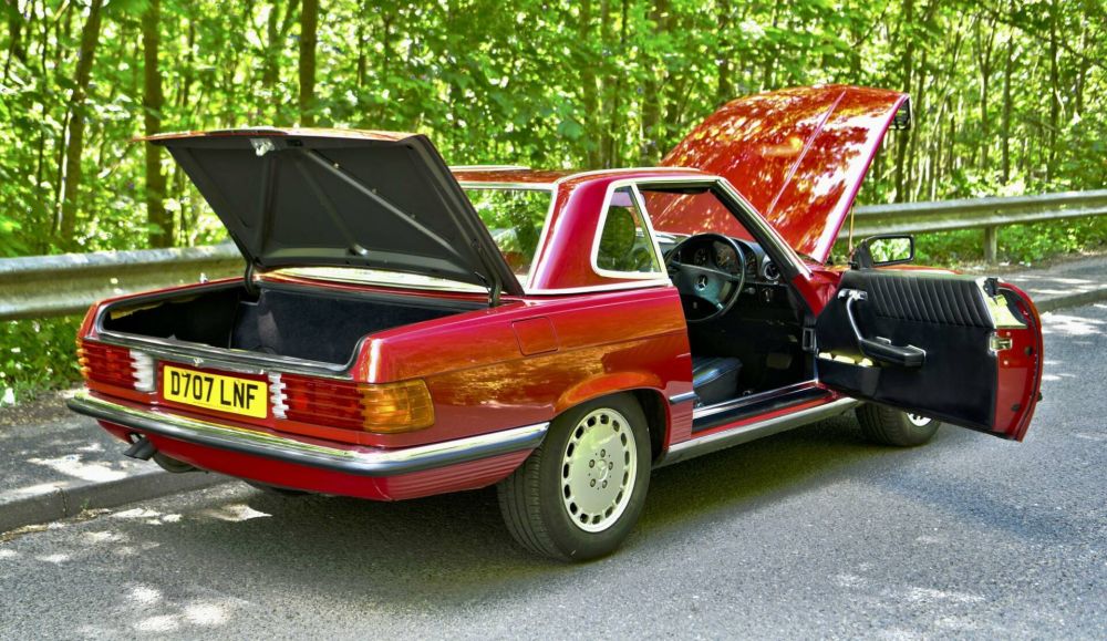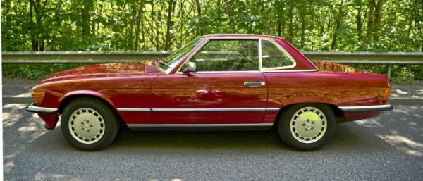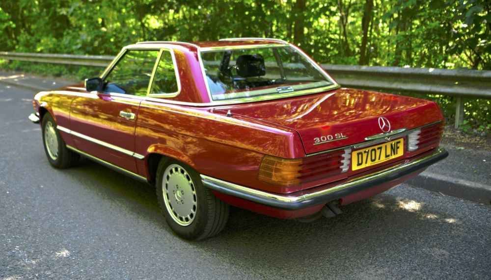 1988 Mercedes Benz R107 300SL Cabriolet Vin Number: WDB1070412A050647 Registration Number: D707LNF 71,000 miles from new & absolutley mint pristine. This car has never seen rain & is as good underneath as it is on top. I have to say the pictures do not really do it justice as it is even better in reality then the pictures show. The car is finished in Mercedes signal red & has beautiful black leather to the interior. The paint is simply flawless & perfect with no swirls or scratches at all. This has to be one of the best SL's we have ever had. Unusually it was ordered new with factory air conditioning which was not common at the time & then collected from the factory by the first owner. The car is just serviced & has had a brand new black fabric hood installed to replace the original one that hade deteriorated due to lack of use. THe hard top lifts off easly & has a stand on wheels for storing it when not in use. The car was previously advertised at the SL shop for just under £52K. It comes with masses of bills attesting to a proper open cheque book approach to looking after the vehicle. Not much more need be said as perfection needs but few words. If you are looking for one of these this car is well worth a visit. The current owner keeps it garaged & under a car cover. Now approacing 80 years old he is finding it a little difficult to get in & out of it & thus is now ready to move it on to its next lucky owner. Viewings are by appointment at Strood in Kent.