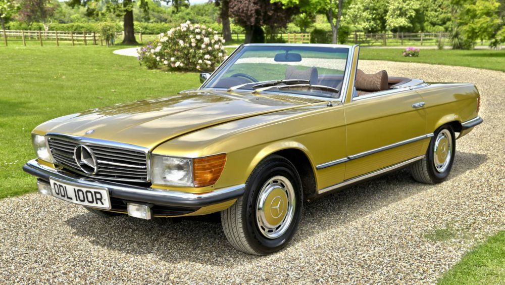 1977 Mercedes 350SL W107 Convertible Vin Number: 10704322012651 Registration Number: ODL100R Owned from new by father & daughter!!! This W107 Cabriolet has covered a scant 61,597 miles to date. The father purchased it new but immediatly the following year bought an SL500 model leaving the 350 for the use of his daugter who has kept it up to this day. The car is finished in unmarked original desert Tan with immaculate brown leather to the seats with tartan inserts. This is atime warp car that has lived in a heated garage its entire life & consequently is utterly corrosion free. Little used in recent years, the car has just had a full service & a set of new tyres installed to make it ready for its next owner. Atthe same time a preventative rust treatment was done to the underside & a new exhaust centre section fitted as condensation had caused a few pinholes to appear in the bottom of the exhaust. The hood is dark brown & factory original not having been put up in years as the car has always ben used with its removeable hard top in situ. Not much more need be said about this car as really it speaks for itself. It is a low mile low ownership timewarp example & is having a full valet performed upon it to put it in tip top order for the next lucky owner.