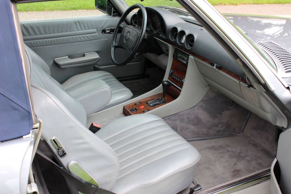 Bijzonder mooie Mercedes-Benz 560 SL in de kleur “Pearl Grey metallic” (122) met slechts 115.000 km. De 560 SL werd uitsluitend voor de Noord-Amerikaanse en Japanse markt gemaakt. Dit exemplaar is nieuw geleverd in Ontario, Canada. Dus voorzien van kilometerteller i.p.v. mijlenteller en Europese lampen. Kilometerstand is aantoonbaar d.m.v. Carfax (vergelijkbaar met NAP). Deze 560 SL verkeert in topconditie, zowel van binnen als van buiten. Nieuwe Sonneland cabrioletkap, inclusief hardtop. ‘Alpaca Grijs’ lederen interieur, code 278a. Geheel ‘matching numbers’, VIN is WDBBA48D6KA097057, motornummer is 11796712044069. Echt een topper! Voorzien van Nederlands kenteken.