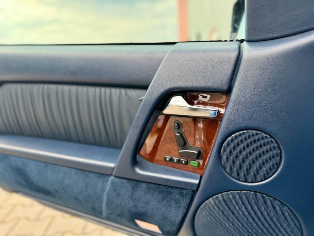 English: SL 500 R129 of the 1st series in a very nice color combination: 721 ONYX GRAY - METALLIC PAINT 272A LEATHER ROYAL BLUE 744 TOP FABRIC 5010 DARK BLUE