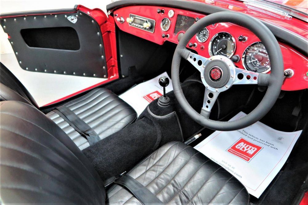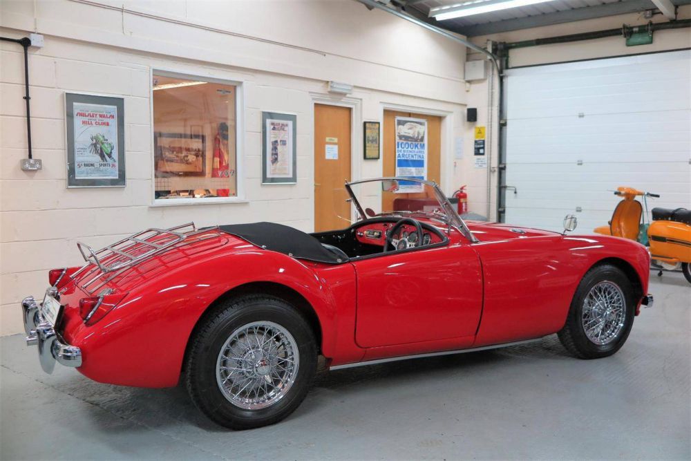 Specification Includes : Fresh 1860cc Stage 2 MGB 5 Bearing Crank Engine finished in period MG Maroon - Vitesse Mazda MX5 Gearbox ( New ) Conversion, Servo Assisted Front Disc Brakes, Adjustable Bia Rear Brakes, New Chrome Wire Wheels with Michelin XZX Period Tyres, Lucas PL Headlights, Retro-Sound Period Style Audio, Stainless Steel Boot Rack. Fitted Seat Belts.Originally Constructed under License ( CKD ) in South Africa this Original Right Hand Drive MGA was restored and imported into the UK in 2016 when it found a home with a UK collector. In 2018 the MGA was Part Exchanged with ourselves against another Classic Car. The Car had been nicely restored and formed the base for a client who purchased and commissioned a further £18,000 spend to create him a tasteful, modern driving classic MGA.