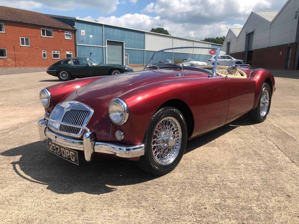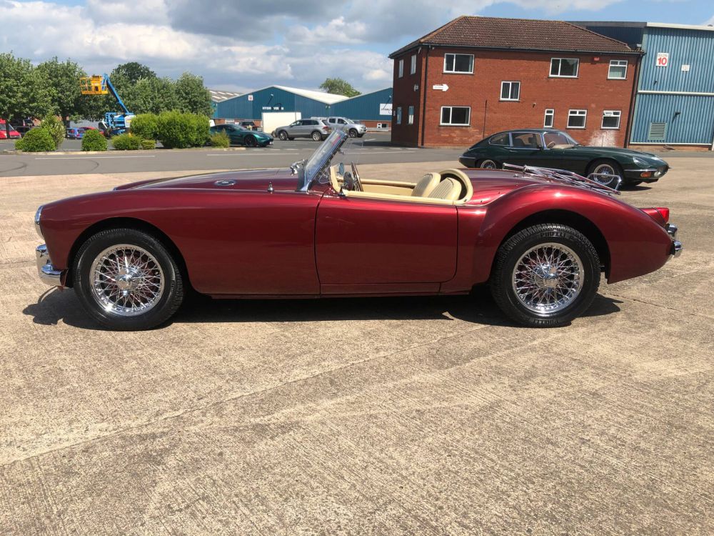 This genuine right hand drive MGA 1500 Roadster rolled off the production line in July 1957. After having an enjoyable life this MGA has been subject to a total restoration over the years including a new chassis and inner and outer body panels. It has has also been subject to a complete mechanical overhaul , including Engine and Gearbox. Looking at this beautiful MGA it has obviously wanted for nothing and now presents itself in stunning Metallic Red with contrasting Beige hide. A car to be jumped straight into and enjoyed for the summer. This beauty will be sold with a fresh MOT, Service, British Motor Heritage Certificate, History File and our CMC warranty.