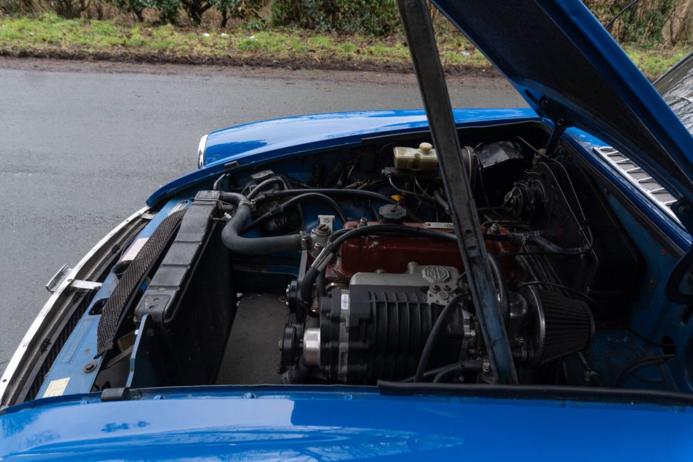 We are very pleased to present this beautiful Blue MGB Roadster to the market, a car in fantastic condition and equipped with a Supercharger Kit enhancing performance. The uprated MGB’s always offer that extra piece of excitement to take out on the road, this example, with its upgraded stopping power and suspension, is the perfect MGB for those who want a truly exceptional MG driving experience. Interestingly, the owner who commissioned the fitting of the supercharger was the First Officer on the Concorde Airliners final flight from New York. He had chosen this MGB after inspecting many, and decided it was structurally the best car he'd seen with a view to enhancing and carrying out performance upgrades. The Pilot took the car to Mechspec in Doncaster who are the obvious choice when it comes to mechanically enhancing an MGB engine. Mechspec fitted the Supercharger kit, along with a Peter Burgess supercharger cylinder Head, uprated camshaft, a 1-2-3 Distributor, a Tourist Trophy Stainless Steel Exhaust, and a Ford Type 9 5-speed Gearbox. STH810S was then offered to the dyno where after all the fantastic upgrades had been fitted, now produced 148bhp.