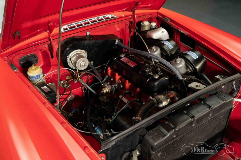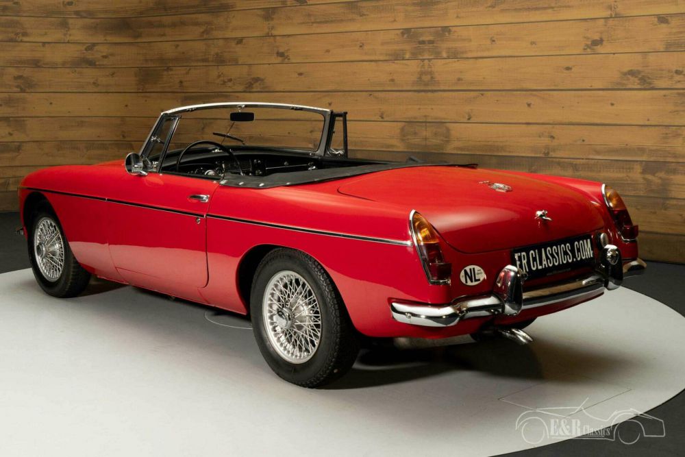 De MGB Cabriolet die we hier te koop aanbieden is uitgevoerd in een leuke kleurstelling. Het rode lakwerk past helemaal bij een British Classic uit de jaren 60 en combineert mooi met het chroomwerk en de spaakwielen. Het interieur van de MGB heeft wat kleine gebruikssporen en verkeert verder in een nette, originele staat. Er is gekozen voor een zwarte soft top die u in een handomdraai inklapt zodat u kunt genieten van de buitenlucht tijdens het rijden.