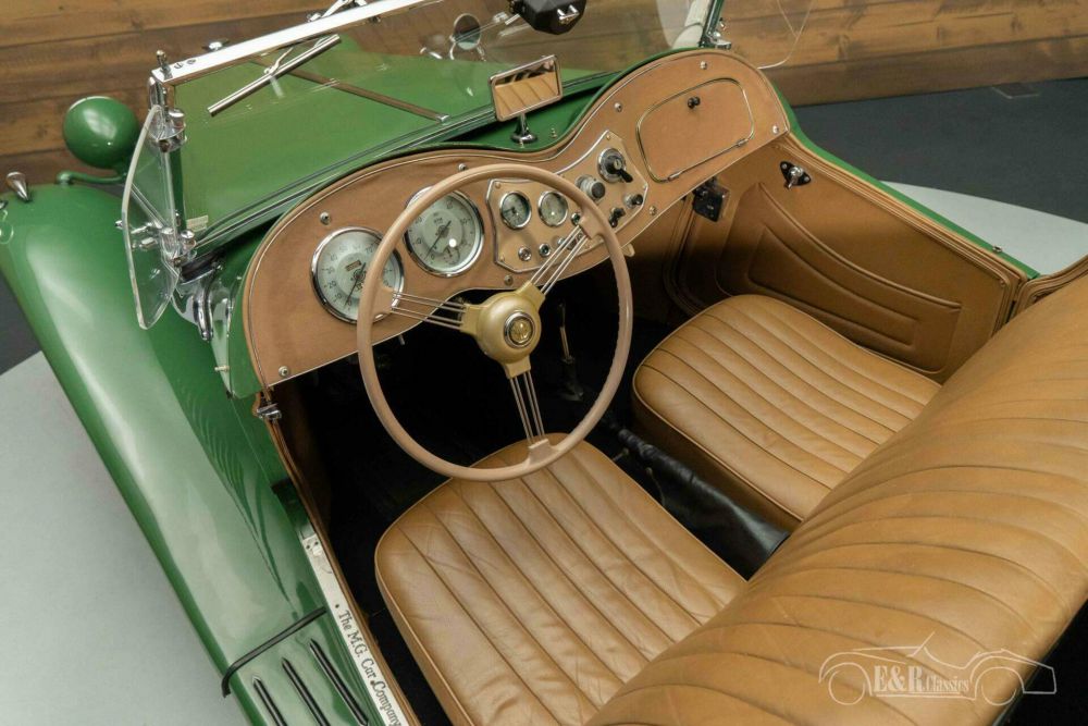 De MG TD die we hier te koop aanbieden is precies zoals een Engelse klassieker eruit hoort te zien, uitgevoerd in de prachtige kleur British Racing Green. De kleur staat fantastisch op de auto en combineert erg mooi met het chroomwerk. Het interieur verkeert in een nette staat en is uitgerust met bruine bekleding die mooi combineert met het lakwerk. Om het geheel af te maken is de MG TD voorzien van een beigekleurige stoffen soft top.