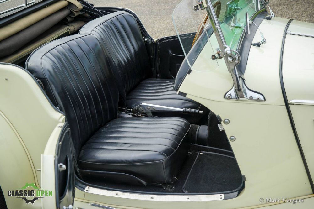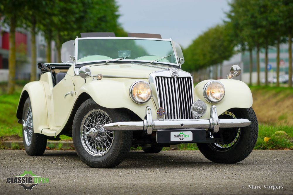MG TF 1250, year 1954. Colour Old English White combined with a black leatherette interior and black carpet. This wonderful MG TF 1250 was sold new in the United States. The automobile was restored in the past, the car is in a very good condition, and it drives delightfully. The MG TF is the last incarnation of the legendary MG T series which started with the pre-war MG TA. The MG TF features a wider body with more fluently flared mudguards, a slanted radiator, integrated head lamps and a brand-new designed dashboard with octagonal shaped gauges in the centre. The MG TF is powered by the 1250 cc four-cylinder XPAG engine which transmits its power through a 5-speed manually operated gearbox which was added later. This stylish British sports car is fitted with a black vinyl soft top, side-screens with black frames and chrome trim, and a black tonneau cover. Furthermore, the car features chrome wire wheels, a chrome baggage rack, a chrome badge-bar, a Lucas fog lamp, a period reversing lamp and wind wings (deflectors) on the sides of the windscreen frame. This is a delightful 1950s British sports car, ready to be enjoyed by a new proud owner. We speak Dutch, English , German and French. Our cars can be delivered with Dutch, German or Belgium registration. We can assist with the French registration. Transport to your door is possible. We have our own workshop facility with 30 years experience with classic cars.