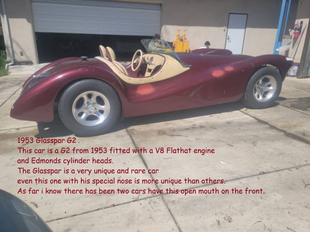 Here is a very special, beautiful Glasspar G2 from 1953.Polyester body with the strong V8 cyl 5.3 liter engine.Runs and drives perfectly. Only a few hundred were made and probably only a few like this one with the wide grille. Comes with correct US registration and import papers. Biggest choice in REAL Classic Cars in the Stolze Collection with more than 450 cars in stock ! From a project to perfect.