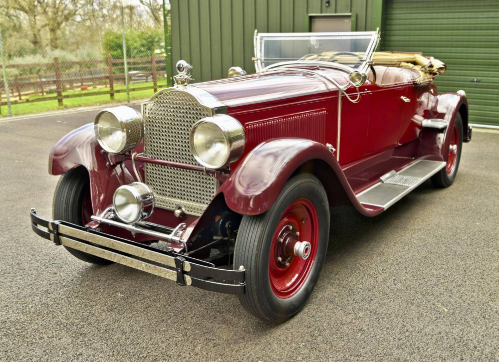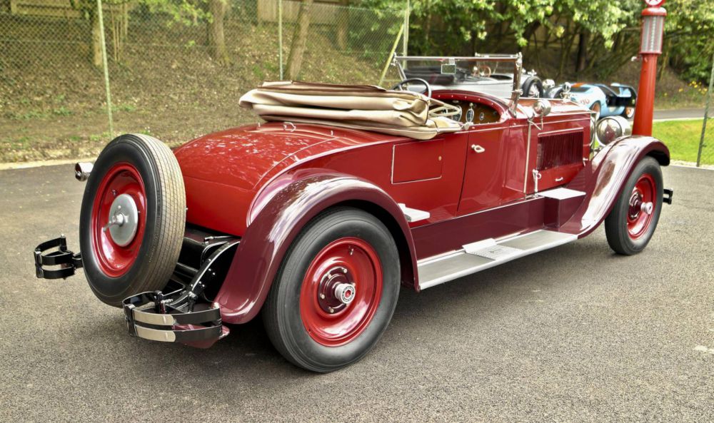 1926 Packard 236 Straight Eight Roadster Chassis number: 211436 USA Papers. We can UK register the car for you. As the recipient of a complete restoration in the 1980s, this rare and stylish Model 236 Runabout Roadster still presents in excellent condition throughout. In a previous owner’s care for the past 16 years, it was stored in a temperature-controlled environment and regularly maintained by an on site mechanic. With a 136- inch wheelbase mated to a sporty roadster body, the combination makes for an incredible driver with a sleek and smooth aesthetic, thanks to the lack of side-mounted spare wheels. Noteworthy factory accessories include a radiator stone guard, cowl lights, drum headlights, additional center headlight mounted to steering, disc wheels with black-wall tires, step plates on running boards, golf bag door to access the rumble seat area. The body is finished in a beautiful two-tone red over dark red livery with matching red disc wheels. Lustrous paint and attractive brightwork reveal the quality of the restoration and the care it has received throughout the years.