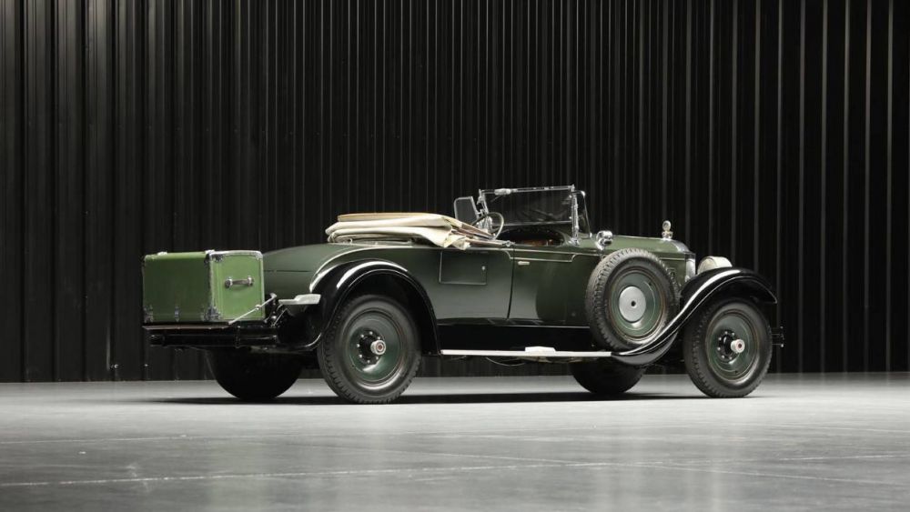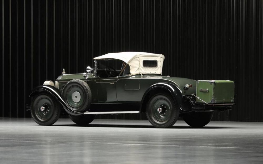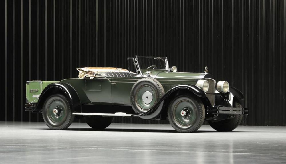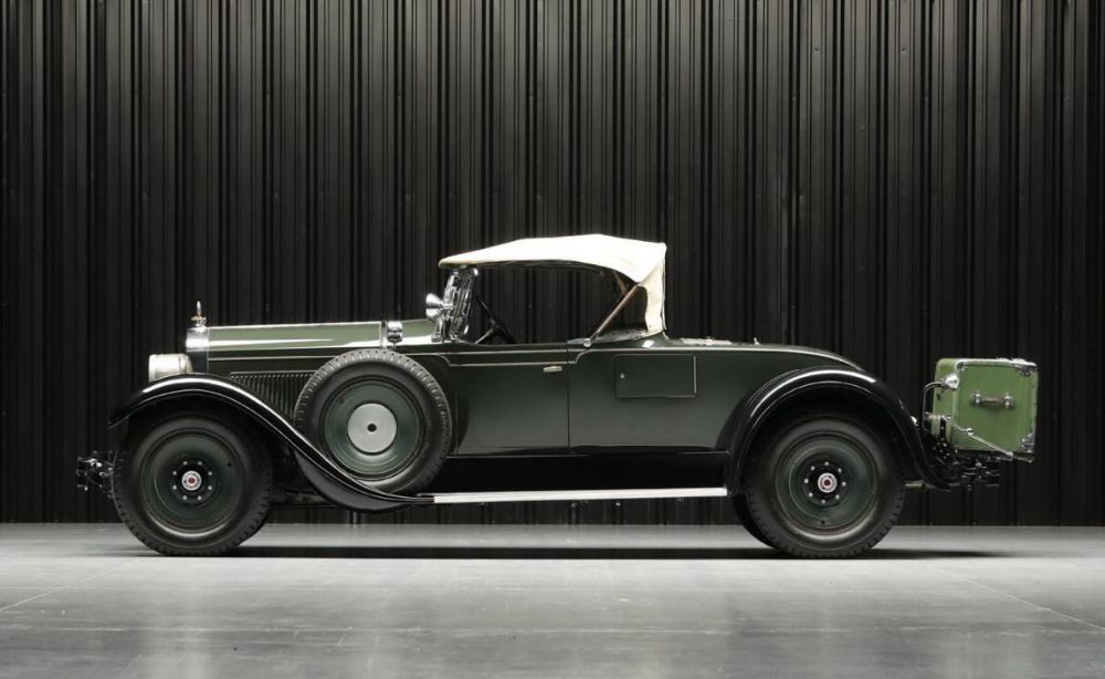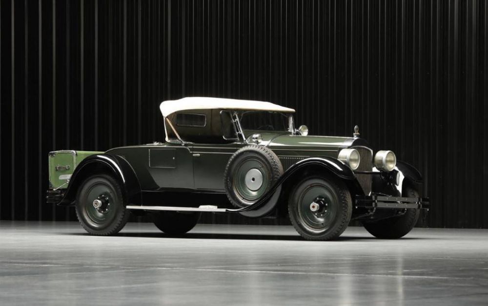 A largely original preservation 1928 Packard Model 6 Sport Roadster in handsome green, with one older repaint. It has a period-correct appearance, is well-accessorised and accompanied by its original Packard body tag. The dark green body with black fenders and ivory canvas top all present nicely considering its age. It is also equipped with colour-coordinated disc wheels and blackwall tires. It has a built-in golf club door and a rumble seat can be found between the main cabin and luggage trunk. Other exterior options include a driver’s side spotlight, rear trunk rack with an accessory trunk, dual cowl lights and side-mounted spare tires. Furthermore, it has a 289 inline six-cylinder engine, 82 HP and three-speed manual transmission. Additionally, there are front and rear semi-elliptic leaf springs, four-wheel mechanical brakes. This 1928 Packard Model 6 Sport Roadster is rear-wheel drive with a wheelbase of 133”.