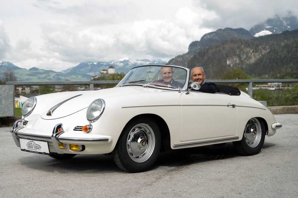 Bei der Übergabe des Fahrzeuges wird auch die Rennfahrerlegende Hans Joachim (Strietzel) Stuck anwesend sein und auf Wunsch den 356 Roadster signieren.