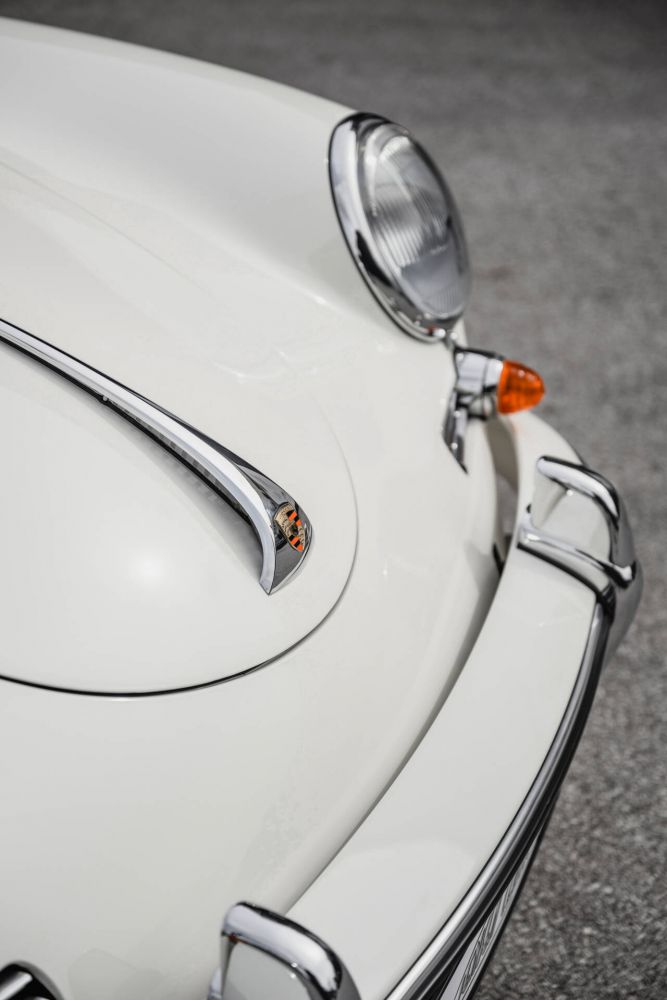The chassis number (88410) shows that only 2,653 vehicles of the 356 B 1600 Roadster were manufactured by the coachbuilder Drauz in Heilbronn at the time. Visually, the B model differs from the A predecessor model in its higher positioned bumpers and headlights, the reversing light mounted under the rear bumper and the curved chrome hubcaps with the Porsche coat of arms.