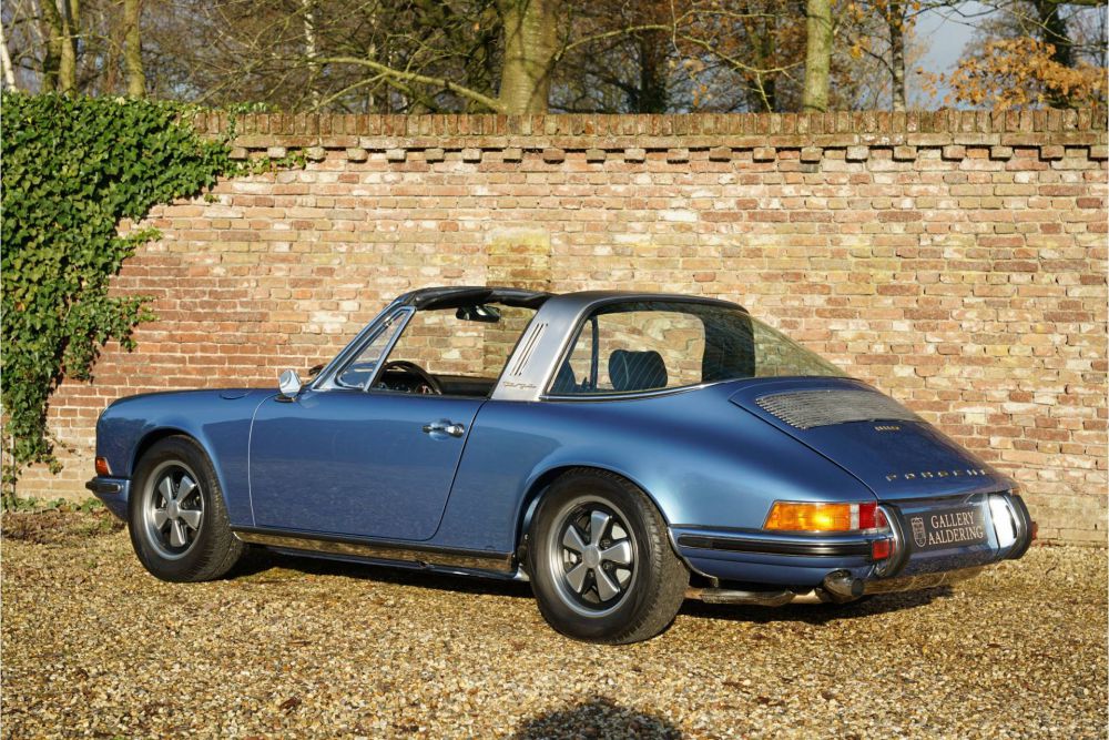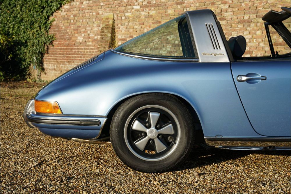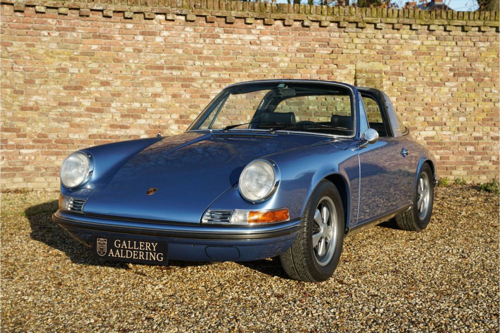 This Porsche 911S Targa first hit the roads in 1971. This is the then top model 911. A 911 in Targa shape with an 180 PS 2.2 6 cylinder boxer engine. This Porsche 911 has a lovely Metallic Blue (code 324) finish. It has remained in great condition. The fine bodywork has nice and thin, correctly aligned panelwork. All the brightwork is also in good shape. The paintwork is pristine without any signs of wear and tear. A lot of recent fine work carried out inside the car is apparent. In the partially renewed upholstery the leatherette stands out. The door cars have been partially re-upholstered and the carpets inside and in the boot space are completely new. The rear bench was in such good condition that they decided to keep the original. The “butterfly” steering wheel has been clad in new leather and the given a new hooter button. It is certainly a great feeling to take place behind the wheel of this 911S. The door closes with that characteristic Porsche click and the fuel injected 2.2 litre engine springs into life with one turn of the ignition key. The engine is really steals the show, what a great piece of German engineering! The 2.2 litre engine delivers 180 Ps at 6,500 revs. The fuel injection ensures perfect performance under all circumstances. Due to an earlier nut & bolt mechanical overhaul the engine runs perfectly. There are invoices present that underline the work carried out. The stainless steel exhaust adds a fantastic note to the finely tuned engine. Changing gear is easy and precise in part due to the recent fitting of a new clutch. The gear ratios are in perfect balance making this car absolutely fabulous to drive. This enjoyment is only enhanced because of new suspension rubbers and good quality tyres. This 911 has therefore lovely road manners and is possibly more comfortable than one of the new 911’s. Was everything perhaps so much better in the past? The 15” Fuchs wheels no doubt contribute to the level of comfort. Driving this 911 is so nicely predicable and easy to control thanks to the instant engine response to the throttle. In short we are happy to present this all-over very well maintained and delightfully finished Porsche 911S Targa. Gallery Aaldering is Europe’s leading Classic Cars specialist since 1975! Always 300-350 Classic and Sportscars in stock, please visit www.gallery-aaldering.com for the current stock list (all offered cars are available in our showroom) and further information. We are located near the German border, 95 km from Düsseldorf and 90 km from Amsterdam. So easy traveling by plane, train, taxi and car. Transport and worldwide shipping can be arranged. No duties/import costs within Europe. We buy, sell and provide consignment sales (selling on behalf of the owner). We can arrange/provide registration/papers for our German (H-Kennzeichen, TÜV, Fahrzeugbrief, Wertgutachten usw.) and Benelux customers. Gallery Aaldering, Arnhemsestraat 47, 6971 AP Brummen, The Netherlands. Tel: 0031-575-564055. Quality, experience and transparency is what sets us apart. We look forward to welcoming you in our showroom