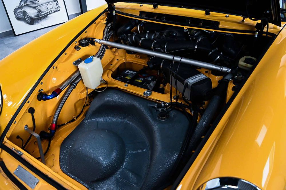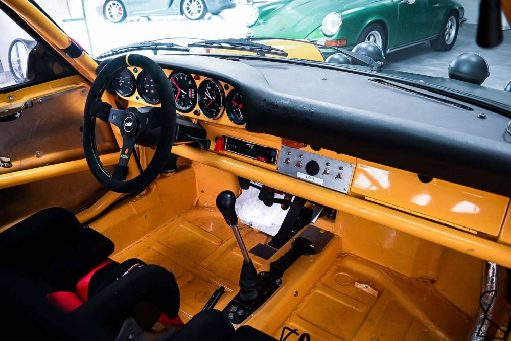 The porsche is equipped with a welded cage from MK Cages, rally suspension and a limmited slip differential.