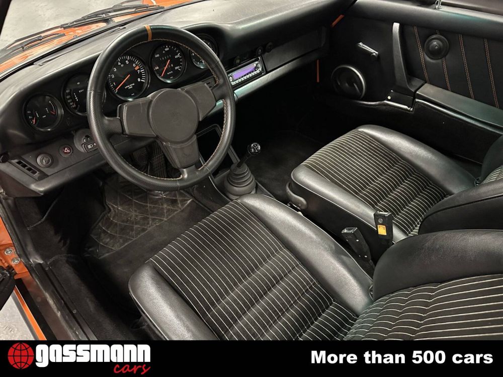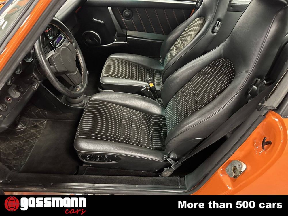 Porsche ATS Hackmesser Felgen, Radio mit CD-Teil und 4 Lautsprecher, Colorverglasung mit Grünkeil, elektrische Sitze, Heizung, Orange Ziernähte an Leckrad-/Türverkleidung, H4-Scheinwerfer.
