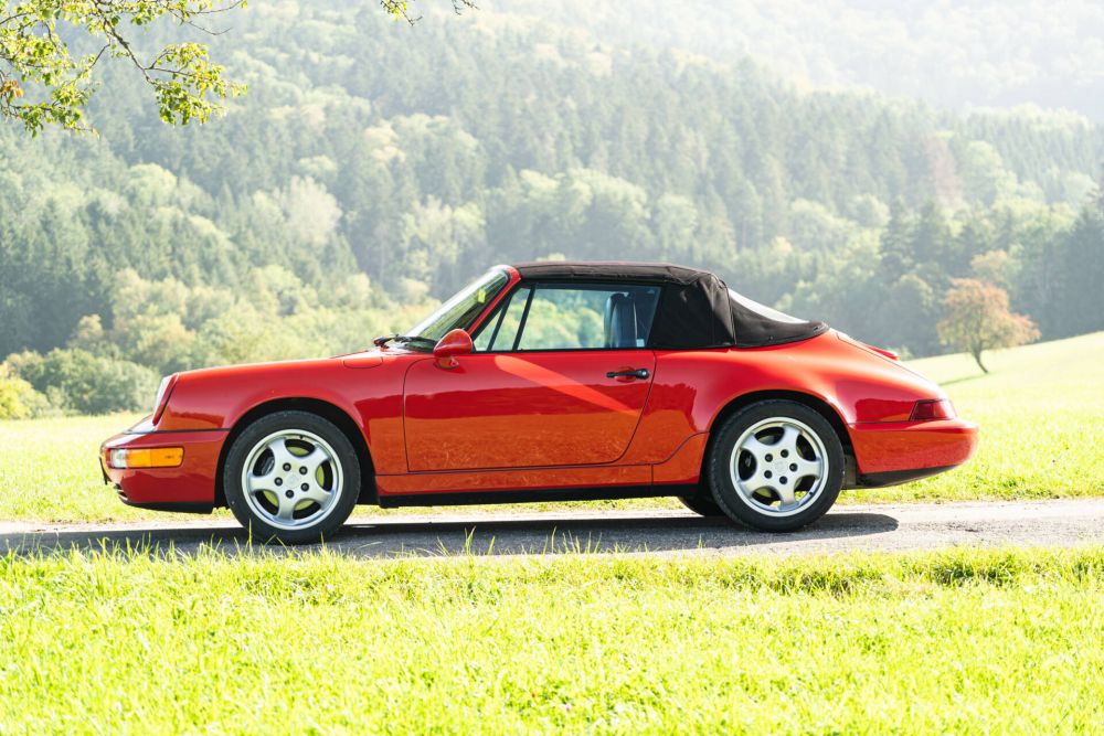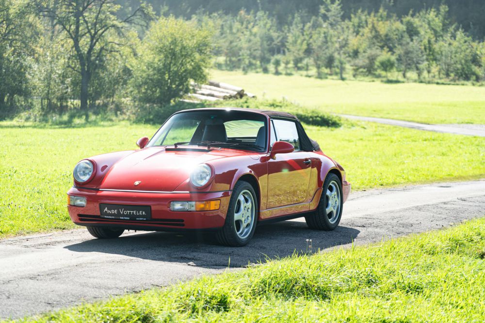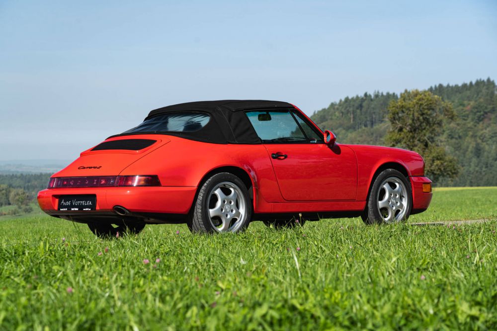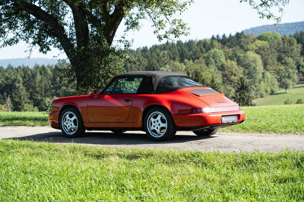 Zum Verkauf steht ein Porsche 946 Carrera 2 Cabriolet in der Farbe indischrot mit 49.109 km.