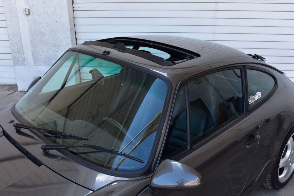 The cabin of this third iteration of the 911 has been enhanced in terms of comfort and safety equipment, with the introduction of airbags, air conditioning, an optional sunroof and electric seats. Our tester is clad entirely in black leather, and the dashboard is flawless thanks to the quality of its manufacture, while the instrumentation retains its usual layout of five dials with the rev counter in the middle. The seats offer good support and are perfectly well preserved despite discrete signs of wear, while the black carpets and rugs are on a par with the rest of the cabin, as are the plastics.