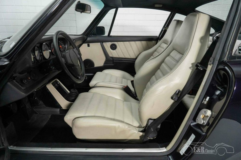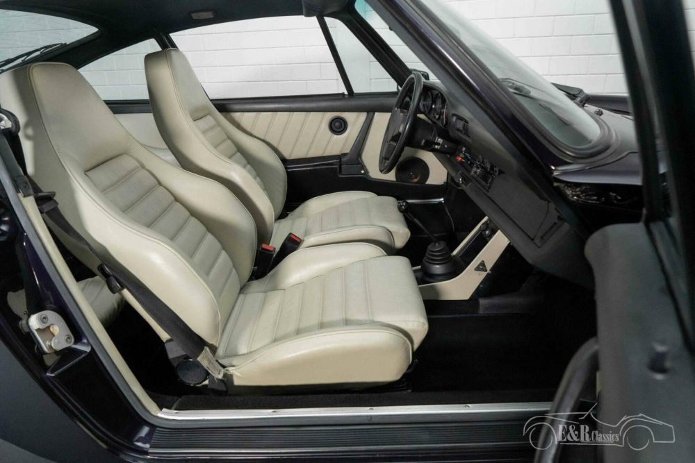 The Porsche is executed in the rare colour Viola Metallic. The Viola Metallic paint has already been repainted and looks beautiful. The paint is not only well sprayed and in good condition, but the previous owner also provided it with a ceramic paint sealant that preserves the shine of the car even better. The dark Fuchs rims look great on the Porsche and are fitted with good tires in the correct sizes. The Porsche is equipped with a sliding roof so that you can enjoy the fresh air while driving on a warm summer evening. The interior features a cream-coloured leather interior that contrasts beautifully with the dark purple paint. The car is also equipped with a number of extra options such as air conditioning, power windows and a main power switch.