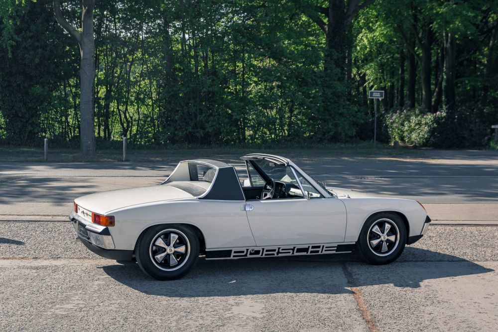 And then there’s the twist: it’s practical. With the engine mounted in the middle, the 914/6 has not one, but two trunks. Even with the Targa top stowed in the back (which it does neatly, without drama), you’ve still got space to spare. This is not a car you have to apologize for—it just works. The roof itself? Brilliantly simple. Light, easy to remove, and refreshingly free of leaks or fuss. No gymnastics, no vintage quirks—just click, lift, stow. Inside, it’s delightfully ‘70s. Basketweave dash, flip-up glovebox, and surprisingly ergonomic layout. Visibility is excellent, the cabin is wider than expected, and even tall drivers fit comfortably. Everything feels quirky and Porsche all at once. The 914/6 might be Porsche’s best-kept secret. A car that delivers true sports car dynamics, genuine usability, and character in spades. For decades it was misunderstood—too weird, too different, too risky. But not anymore. The tide has turned. Prices are climbing. And honest, rust-free, matching examples like this one are getting harder to find every day.