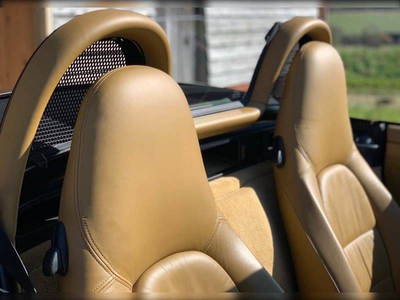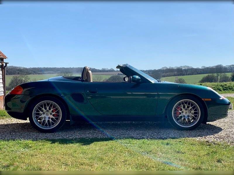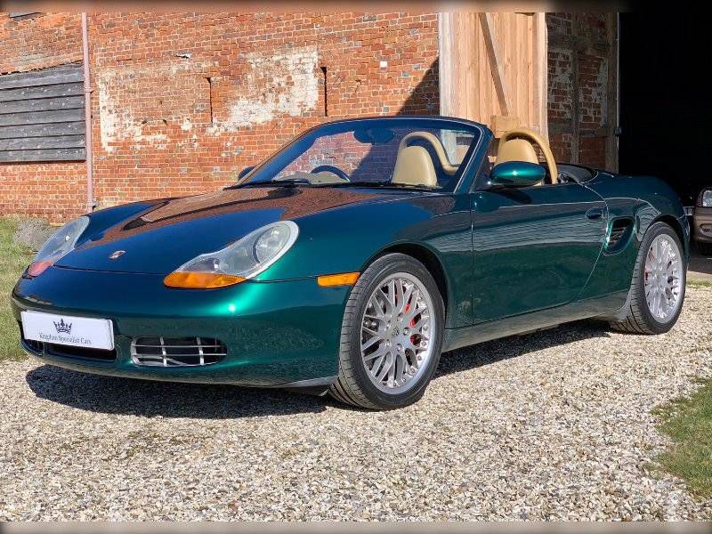 Arriving soon, this Porsche 986 series Boxster Tiptronic S was registered in December 2000. Having only 2 owners from new this fine example has covered just 59k miles. Finished in the very rare colour of Rainforest Green metallic with contrasting Tan leather interior, this 3.2 Boxster Tiptronic S has a comprehensive service history file. Clearly a very well cared for original example, this 986 has a very good specification which includes extended tan leather upholstery, glass heated rear window and cruise control. A previous owner/enthusiast has sensibly fitted the IMS Guardian (Inter-Mediate Shaft) sensor for piece of mind. In car entertainment has been upgraded to a Kenwood Sat Nav unit with Bluetooth connectivity, providing more practicality for daily driving. With its 6 cylinder Boxer engine producing 252bhp, this Boxster Tiptronic S has a factory claimed top speed of 158 mph & can cover the 0-60mph sprint in 6.2 seconds. This performance, combined with open air driving provided by the electrically folding mohair roof, provides an exhilarating drive. For more information do enquire about this low mileage, low ownership modern classic Porsche.