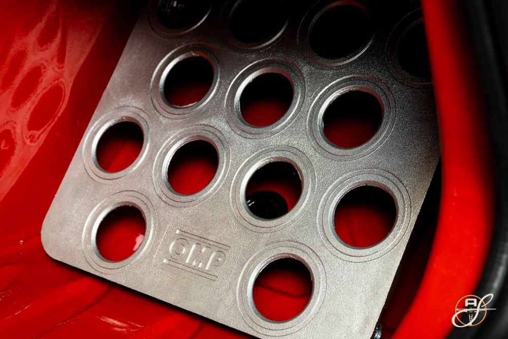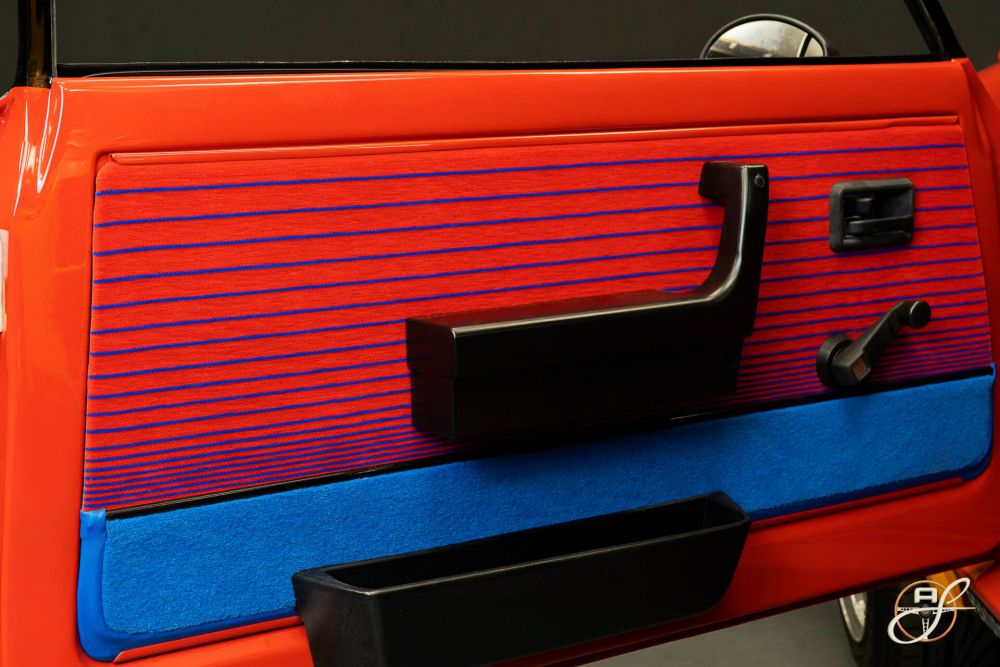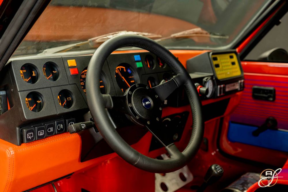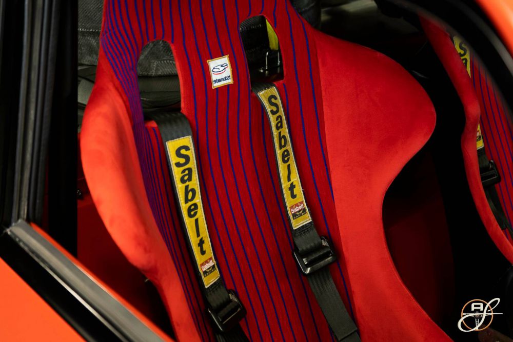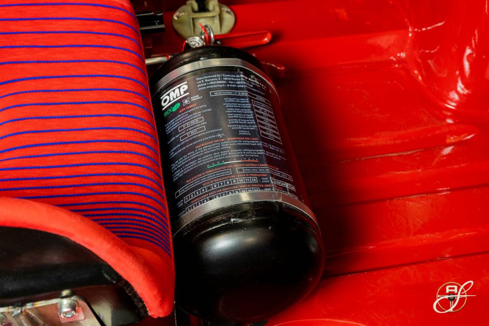 In its interior we are welcomed by a Motolita competition steering wheel, and two firm Stand21 period backrests, which follow the original decoration of the 5 Turbo, and which have Sabelt 4-point harnesses. The entire cabin is protected by a 6-point cage and even the co-driver has a complete Terratrip to participate in rallies.