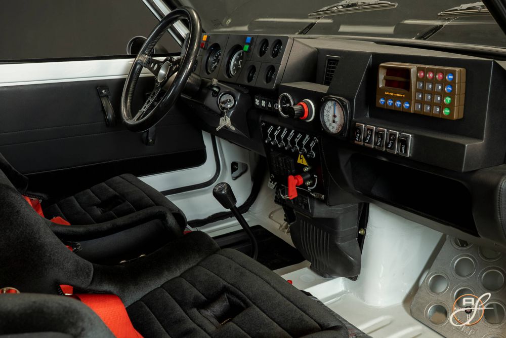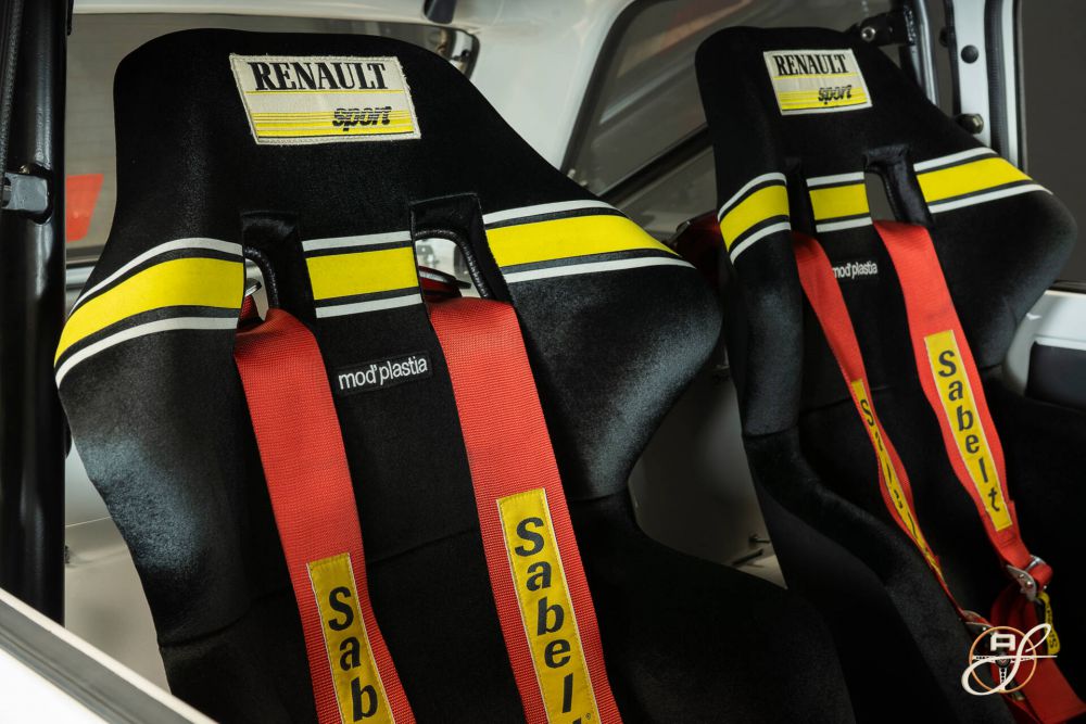Inside, a Renault 5 Turbo 1, we are greeted by an Iso Delta racing steering wheel and two firm Mod Plastia bucket seats, on which rest Sabelt 4-point harnesses attached to Renault Sport 6-point roll bars