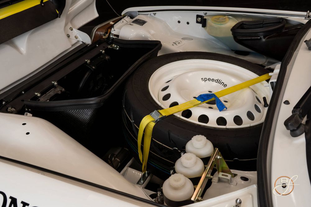 The wheels, Speedline Corse, with a spectacular rear groove, hide AP Racing 4-piston steel disc brakes. The brake force distributor and the double brake pump are from the same firm. It also has a hydraulic handbrake