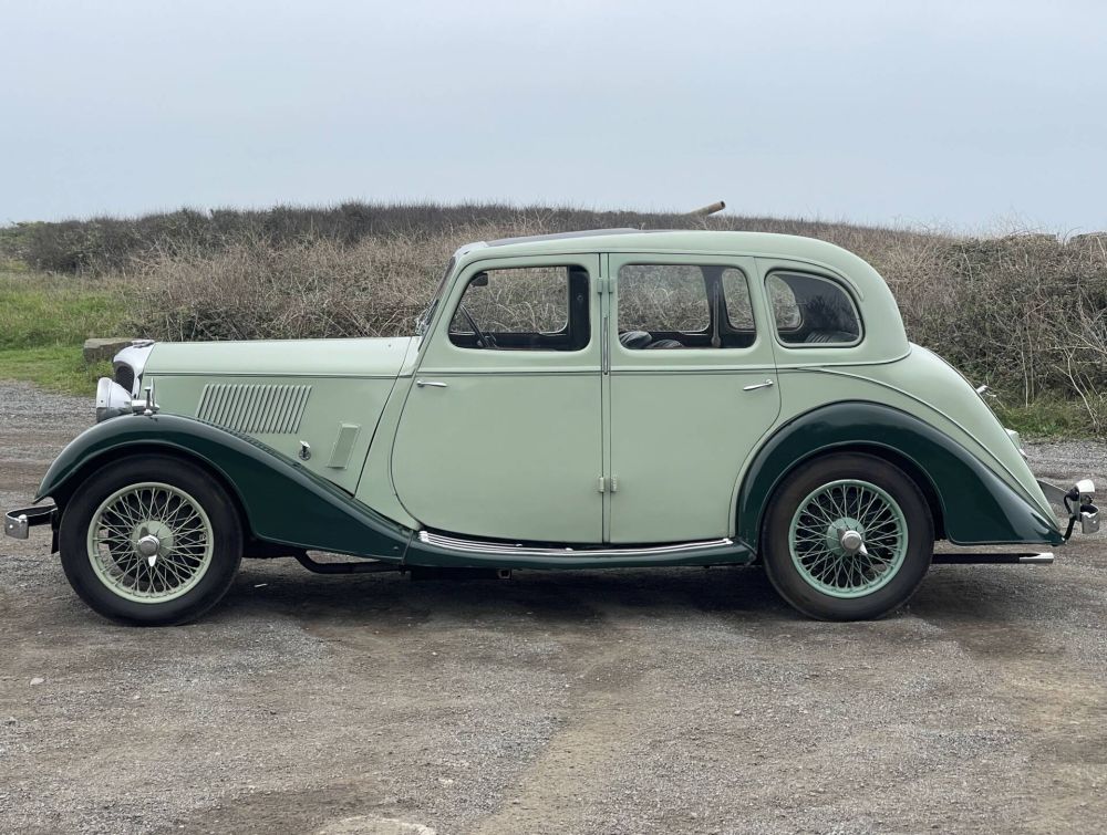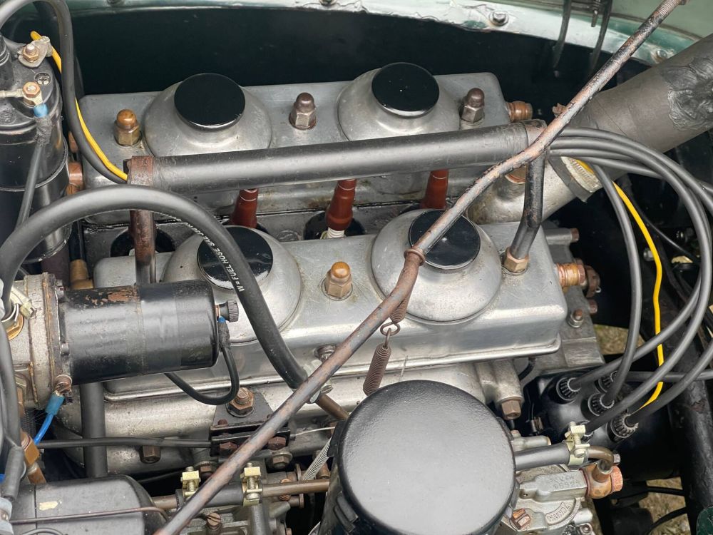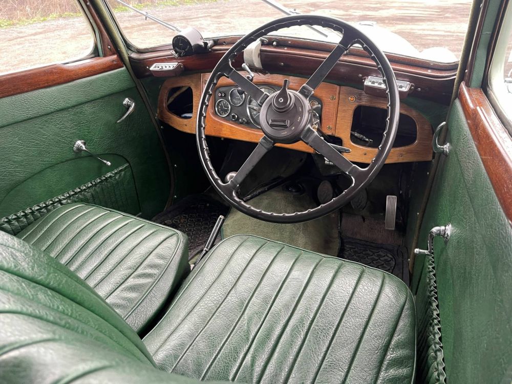 This Riley Nine was first registered in the UK as FPJ 681 in August 1937. It is unusual in that rather than having the regular 4-speed pre-selector gearbox fitted to most of the cars sold, it has the rare 3-speed floor change with dual overdrive. It is believed that only around 20 such cars were built. We don’t have much in the way of detailed history for the car – there is a photo of the car with a previous owner some 60 years ago – but do know that prior to its purchase by a Guernsey resident in 2019, it was the subject of much mechanical refurbishment between 2011 and 2014.