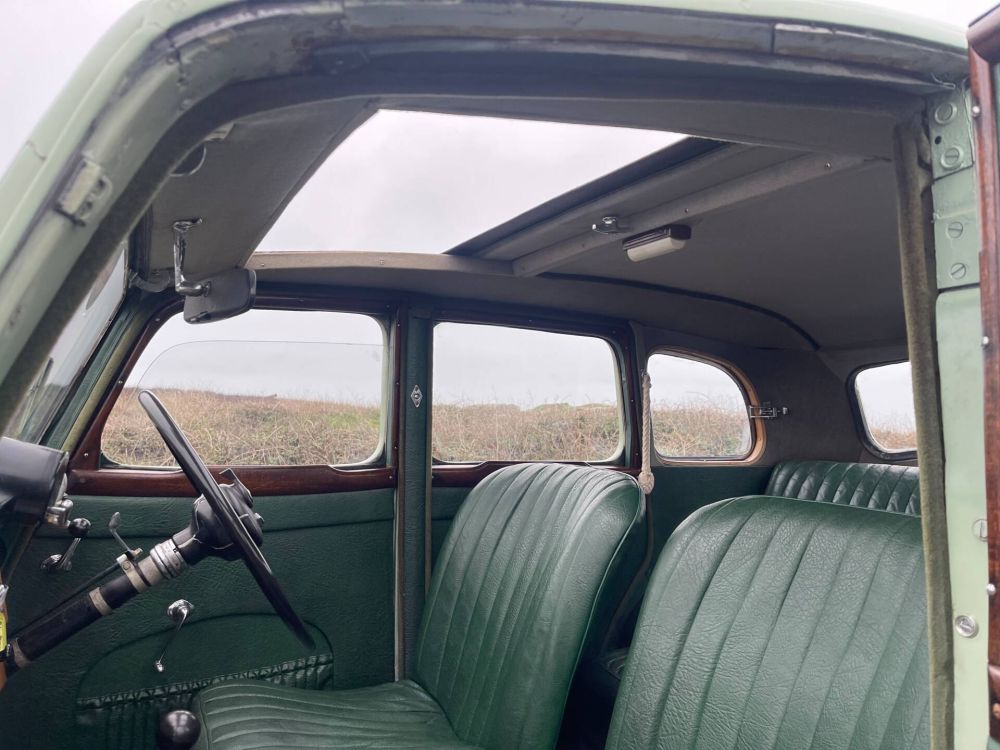 Much of the interior has clearly been refurbished at some point in the past, but all still remains in keeping with what appears to be the original, patinated rear seat. Dashboard and wooden trim is all present and in good condition. A sliding fabric sunroof is fitted.