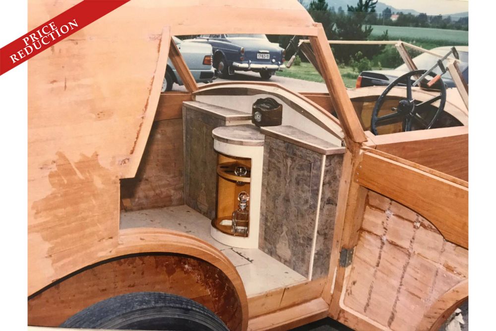 This Rolls-Royce 20/25 with exclusive bodywork was supplied form new in England on the 4th February 1933. It was exported to Norway on the 23rd February 2007. Over 20 years ago the last owners were looking for a suitable wedding car, when they found this Rolls-Royce a few years ago. It was then given a unique, completely handmade, bodywork in Norway. The basis bodywork consisted of a 3-layer mahogany wooden frame. It took a long time and lots of funds to complete. The Brewster Town Brougham design was used a template for the bodywork. This had been a one-off specially made for Mr Bennet as well as having been used in the Mae West movie ‘Go West Young Man’. The whole process from start to finish has been extensively photographed. Just take your place in the back of this Rolls-Royce to be submerged in utter luxury. The luxurious seating, drinks cabinet with two carafes and glasses, a Jaeger clock and removable vanity mirror set the scene. Everything has a luscious wooden finish. The chauffeur’s soft-top protection is naturally forms part of the inventory. Copies of the guarantee certificate, bill of sale and factory documents are included. A unique car with a special provenance.
