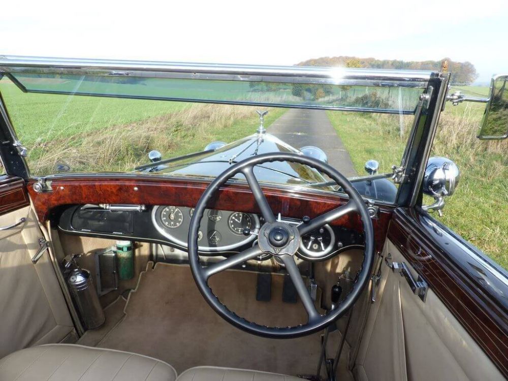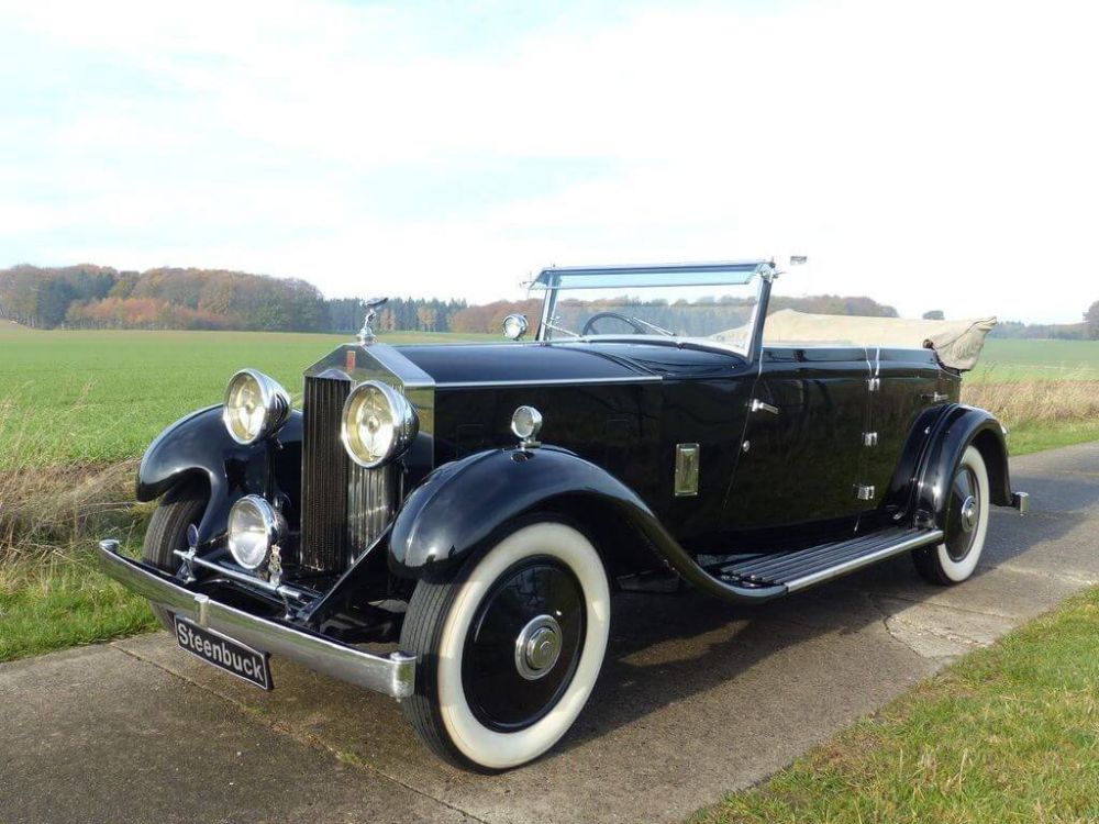 After World War I the demand for larger cars, especially the ones with chauffeur, declined rapidly. So Henry Royce felt compelled to develop a smaller model, the Twenty which was introduced in 1922. Its outstanding performance for its size (100 km/h were possible!) made the Twenty very popular with its owners. The next version of this model was the 20/25 HP which was in production between 1929 and 1936. With 3,9827 cars the small Rolls-Royce was a big success. The body of our Rolls-Royce 20/25 HP is an All-Weather Convertible from T.H. Gill & Son Ltd. It is a particularly high end and one of a kind car. Its gorgeous Art Deco mounts in sterling silver are remarkable. Its first owner was a Mr. Ferguson. The vintage car is matching. It enjoyed a complete restoration by Bowling-Ryan Ltd. in Kearsley near Manchester. Today this classic is registered in Germany.