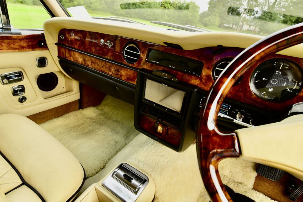 The car has covered 89,000 miles from new and comes with a large file of invoices from well known specialists to keep it in tip top order.  As a result it drives beautifully in unruffled silence with ice cold air conditioning.  An aftermarket Burr wood steering wheel has also been fitted which is pleasantly tactile to the touch.