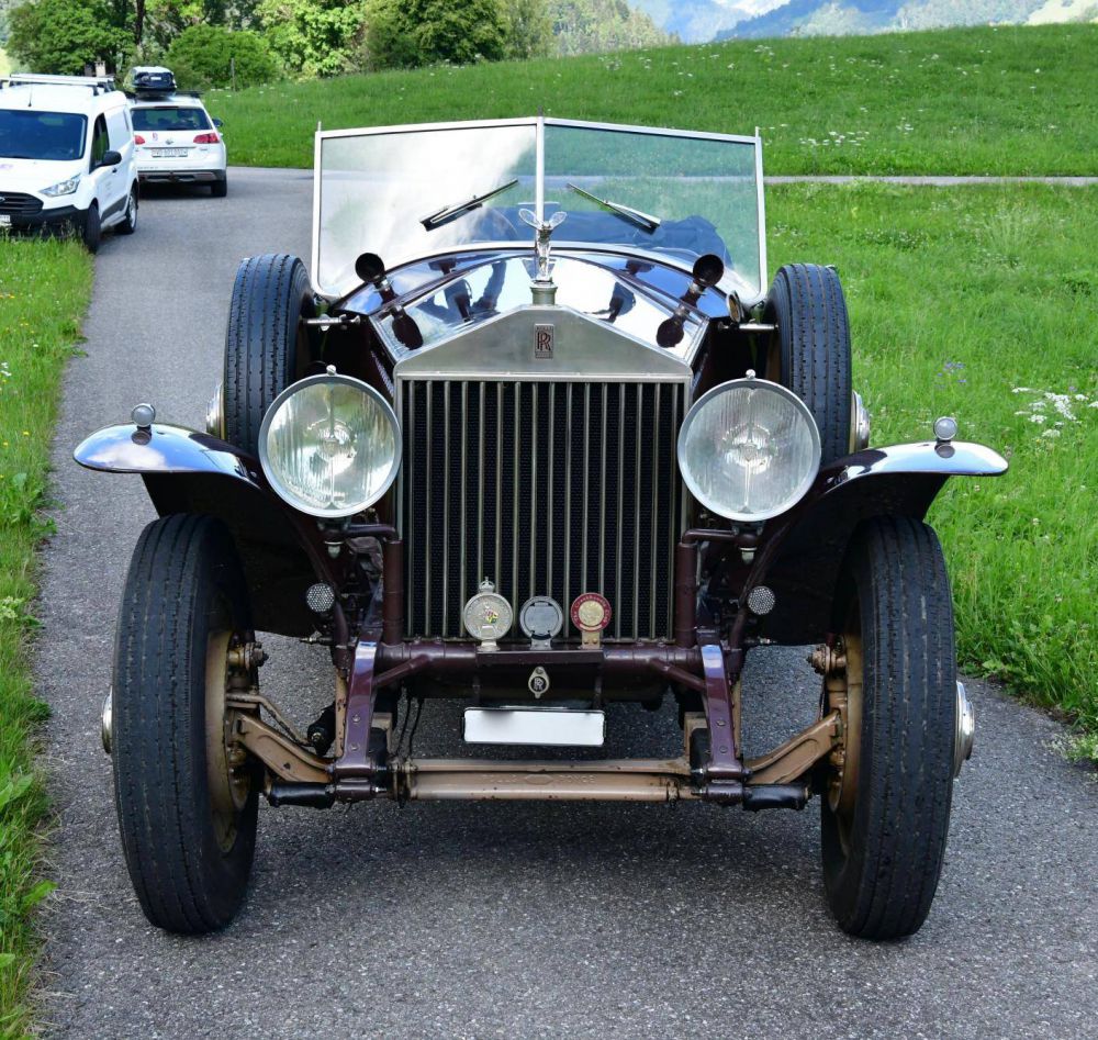 1926 Rolls Royce Phantom 1 Tourer by Conceivers. Chassis number: 18YC Registration number: Swiss Registered In simply beautiful running condition with a silent engine, this car has resided in a prominent Swiss collection near Geneva that we have been retained to sell. Each car in the collection has been looked after by a Rolls Royce speciailist without regard to cost. The coachwork takes the form of an earlier rebody as an open tourer by the firm of Conceivers. The car features a rakish V screen along with comfortable seating for 5 people. Interior leather is dark brown & of high quality with just the right amount of patination as one might find in one's favourite arm chair. The rear has a fold out occaisonal table of large proportions along with twin drinks cabinets either side. Brown carpets are underfoot. The car is painted in chocolate brown with beige wheel discs. A large metal motoring trunk is affixed to the rear. Beautiful Marechal headlamps are mounted to the front. This Rolls Royce Phantom 1 spent many many years in South Africa where the climate was kind to it accounting for its excellent state of preservation underneath. A colonial model, the car is equipped with the louvred colonial style bonnet. A full set of period instruments are in their requisite places in the dash board with the speedometer in Kilometers. A Tapley Gradient meter is also fitted along with an altimeter. On the road this car is a pleasure to drive. The engine is strong & silent. On the day of photography we drove many miles up a steep swiss pass, mostly in top gear with the engine never getting hot, whilst exhibiting high oil pressure at around 28 lbs PSI. The car is loacated near Geneva where it may be viewed by prior appointment. Vintage & Prestige of Northampton Ltd.