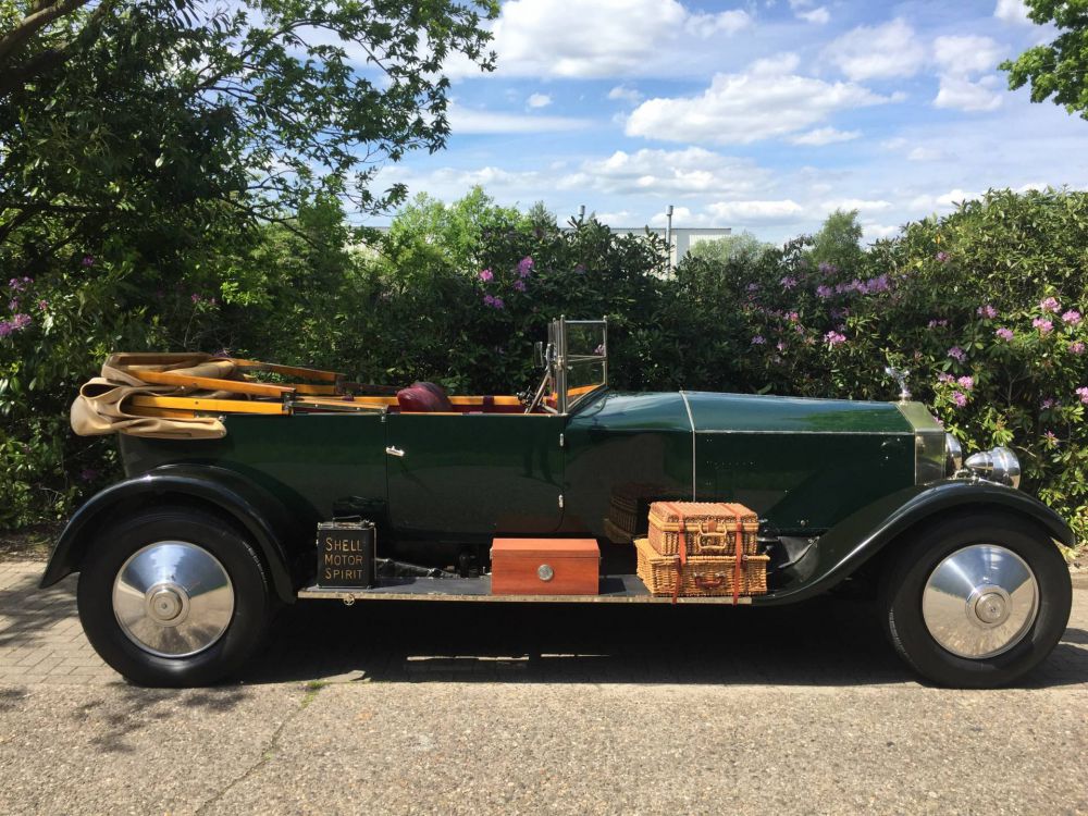Rolls-Royce New Phantom from 1925 in very good restored condition. Very special split front window and torpedo bodystyle. Engine starts and runs perfect, gearbox changes gears easily and the car drives very light. Finished in green with black fenders and red interior.