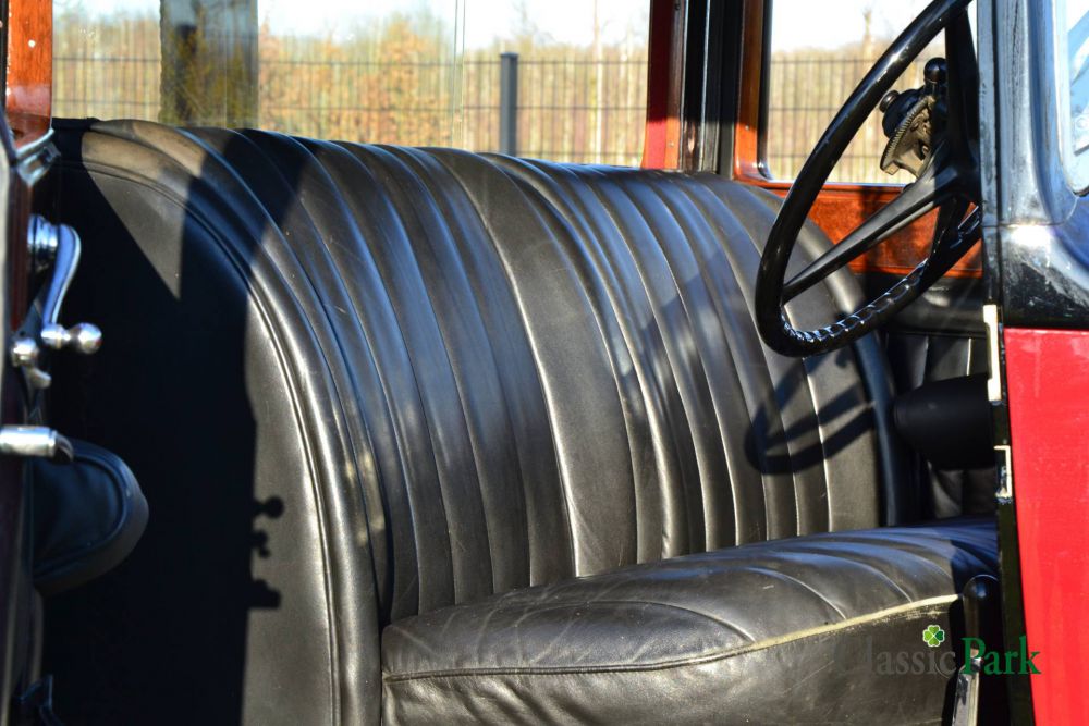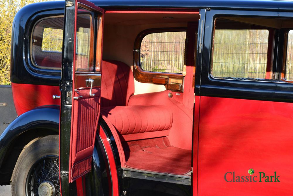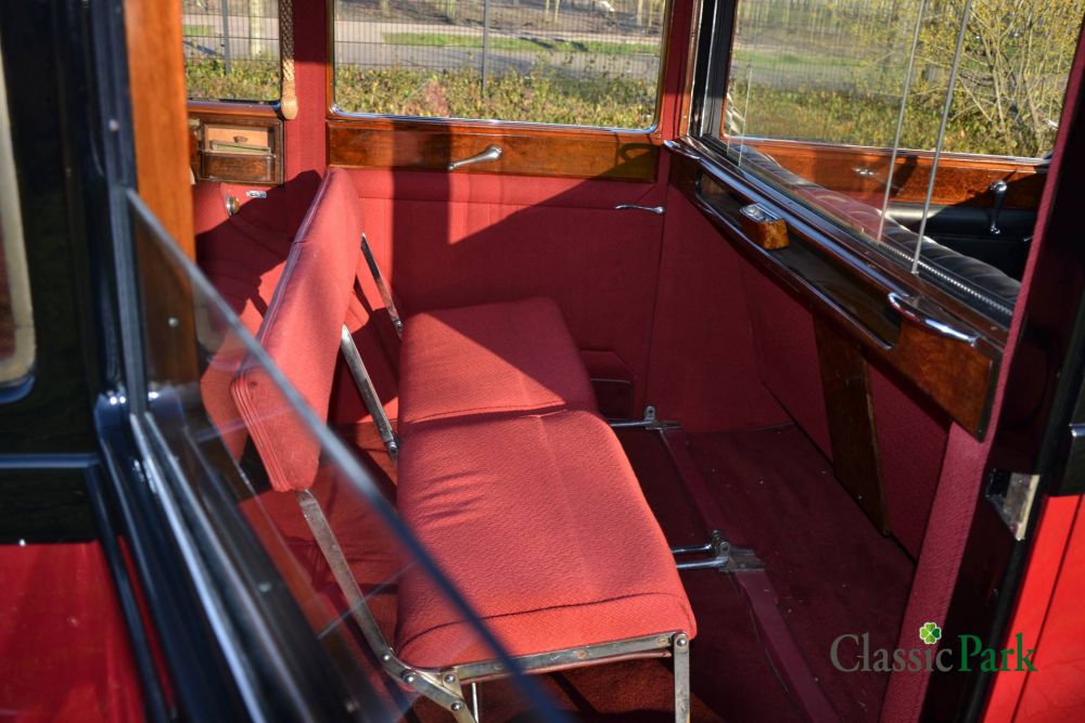 In the pre-war years, Rolls-Royce coachworks were always fitted by coachbuilders. This Phantom II was built by Hooper Coachbuilders Ltd., Hooper for short, who built a Limousine body for the first owner, Lady Bicket. Lady Bicket ordered her Phantom II through Jack Barclay Ltd. in London, which at the time was the largest Rolls-Royce dealer in the United Kingdom. Sometimes this bodystyle is also referred to as '4d6l limousine', which stands for 4-door, 6-light limousine and indicates that it is a four-door body with six side windows (three on each side). Such a carriage has the characteristic that the rear seat is built above the rear axle. This creates a huge interior space that usually includes folding, temporary seats. The Phantom II Hooper Limousine at Classic park has a black leather interior in the front, however in the back, behind the separation wall, it is upholstered with red fabric. Such an interior exudes the class of the first owner. Two provisional seats have been folded away against the partition wall and can be easily unfolded, turning the car into a spacious seven-seater limousine.