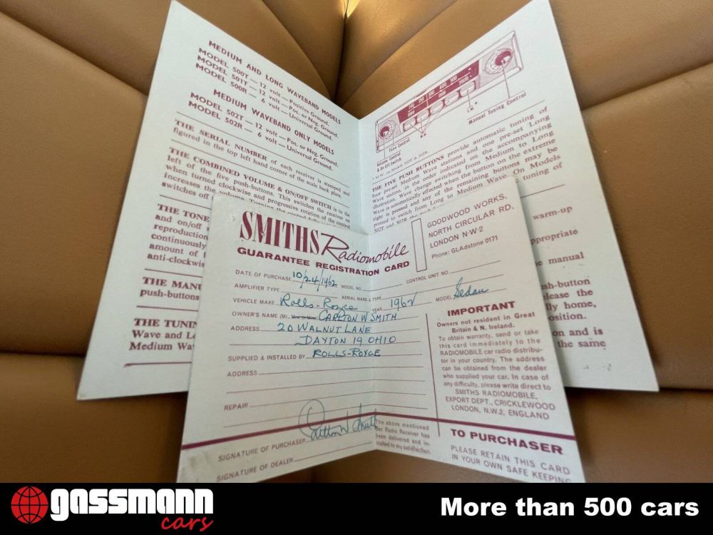Die Begleitdokumentation enthält Kopien der Bau- und Besitzdokumentation der Rolls-Royce Foundation sowie die Originalgarantiekarte für das Radio mit dem Namen von Herrn Smith.