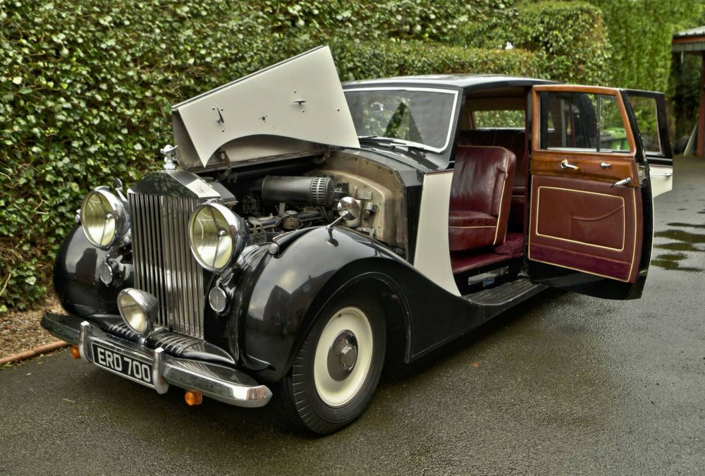 1949 Rolls Royce Silver Wraith by Vincents of Reading Registration Number: ERD700 Chassis nUmber: WFC63 The Earls court motor Show car, This Silver Wraith has very fine non division razor edge coachwork by Vincents of Reading. Being a non division car it is very spacious inside & well suited to the owner driver. The current owner is 84 years old & how wishes to move the car on having put it recently into his daughters name. Paintwork is black over light cream & is in good order thoughout. We photographed it after it emerged from its winter layup when it is not used & the paint was a little dull not having been polished for 5 moths or so but will respond well to a proper valet & polish. To the interior is original maroon hide piped in beige on the seats in good but patinated condition. A lovely original maroon Astrakahn rug is found underfot in the rear. The car likewise has very good woodwork & pleasingly has a full tool kt that slides out from under the dash board with all small tools present as when new. This is a low mile & particualrly good driving exemple. The brakes are pin sharp, the steering direct & play free & the car is as solid as a rock at 70MPH on the motorway. A new clutch is being fitted prior to sale as it is right at the top of its adjustment currently. A good assortment of bills come with the car mostly from noted marque specialist Mark Taylor near Chichester detailing extensive works that were done to the car prior to the current ownership of some 14 or so years. During the current ownership the car has proved to be 100% reliable never having failed to proceed. It starts right away even after not being run for several months & has a stong go anywhere feel to it. Oil pressure is at the high end of the scale & the car runs cool at 60 to 70 degrees. The engine is silent & runs beautifully. To sum up, this is a car that drives in a way above average manner as a result of the low miles covered & is delightful to take down the road. It has just had a brand new clutch fitted & sailed though an MOT