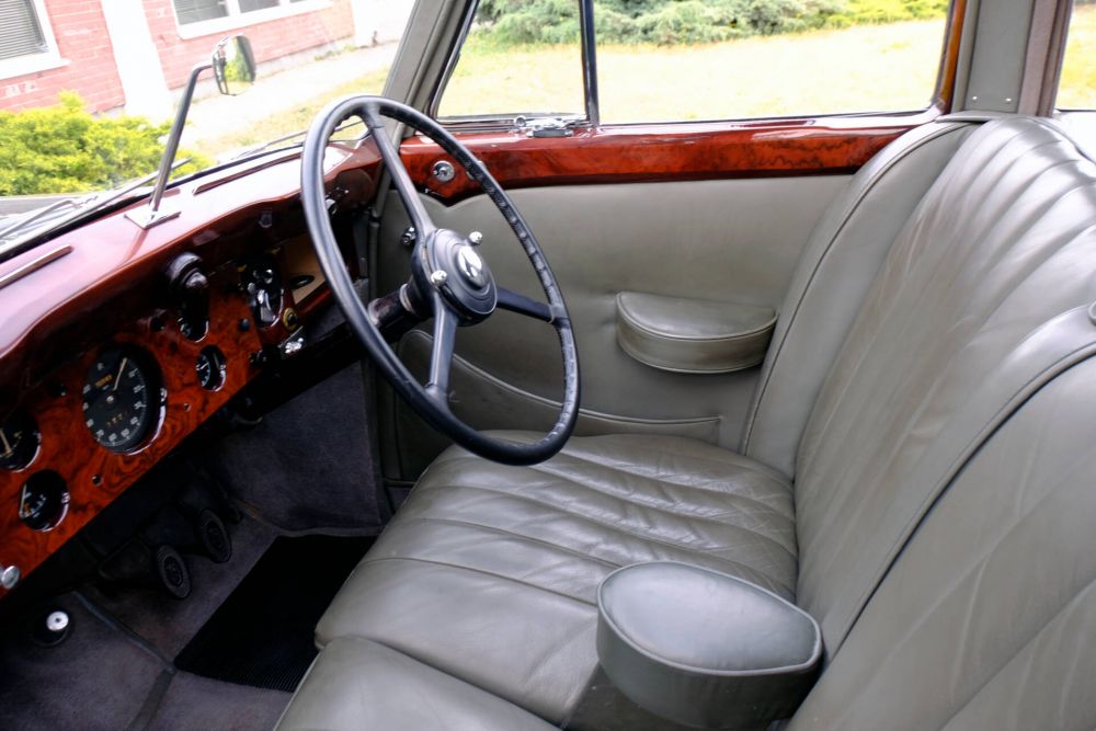 Careful restoration of this most original car sees it handsomely presented as close as possible to its factory specifications. Liveried in Fish Silver, with superb grey leather interior, the car features a sunroof, centre driving lamp, excellent Lucas headlamps with fluted reflectors, wing mirrors and distinctive chain mud flaps to the front wheels.