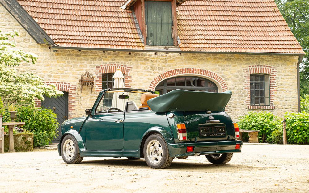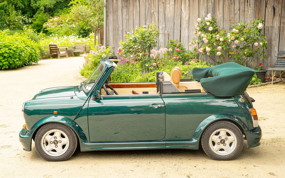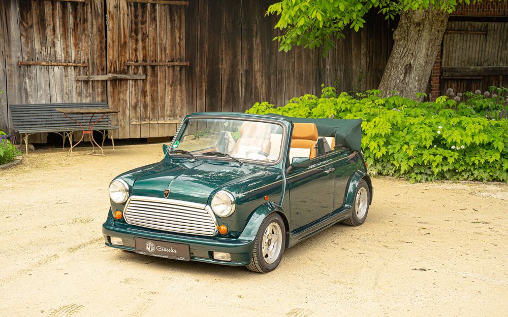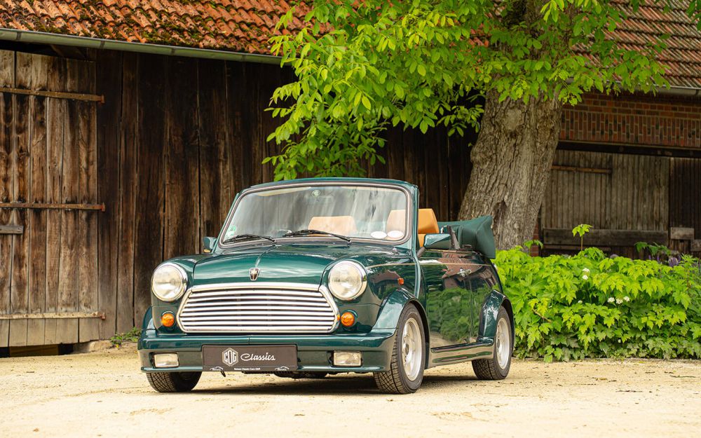 Wir freuen uns für einen Kunden dieses seltene und unglaublich originale Rover Mini Werkscabriolet anbieten zu dürfen. In der raren Farbe British Racing Green metallic stammt es aus dem letzten Baujahr 1996. Mit gerade einmal 56.000 gelaufenen Kilometern präsentiert es sich rostfrei, trocken und top gepflegt in einem einmaligen Original-Zustand.