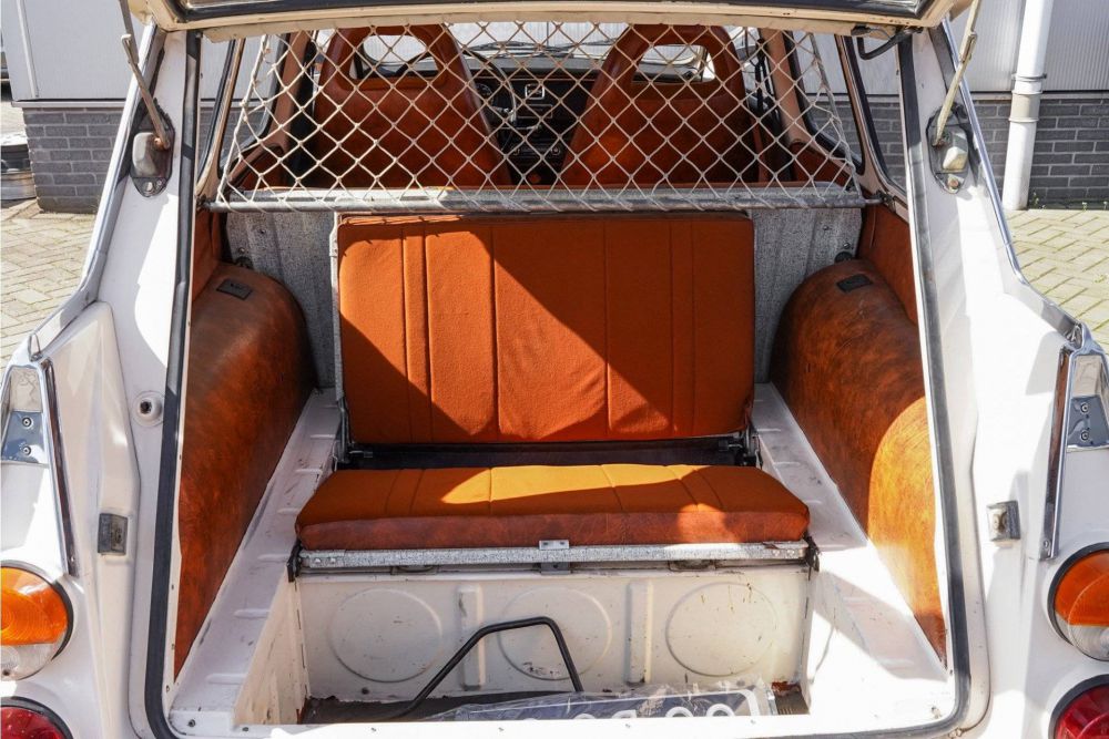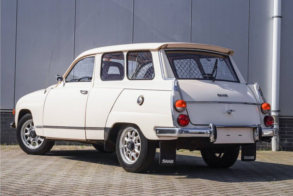 Ons aanbod: De Saab 95 is een tweedeurs zevenpersoons stationwagen. Aanvankelijk gebaseerd op de Saab 93 sedanversie, maar de ontwikkeling van het model volgde zeer nauw die van de Saab 96 daar de productie van de 93 beëindigd werd in 1960. De 95 werd geïntroduceerd in 1959, maar omdat er toen slechts veertig werden gemaakt, wordt 1960 als start van de productie gerekend. De eerste motor was een 841 cc driecilinder-tweetaktmotor, maar vanaf 1967 kwam de 95 met de viertakt-viercilinder-Ford Taunus V4-motor, zoals ook gebruikt in de Saab 96, de Saab Sonett V4, de Saab Sonett III en de Duitse Ford Taunus. De 95 heeft een versnellingsbak met vier versnellingen en een naar achteren gerichte derde bank. Deze bank kwam met het model voor 1976 te vervallen. De productie werd gestopt in 1978, totaal zijn 110527 stuks gemaakt. Deze roomwitte Saab 95 met bruin interieur is een stationwagon / estate uitvoering en heeft de V4 Ford Taunus motor. De auto is volledig gerestaureerd en heeft inmiddels een cult status vanwege zijn bijzondere vormgeving. Er zijn niet veel exemplaren in deze staat. Komt uit de collectie van een liefhebber en wij kennen de historie. Een must have voor de echte Saab liefhebber !!