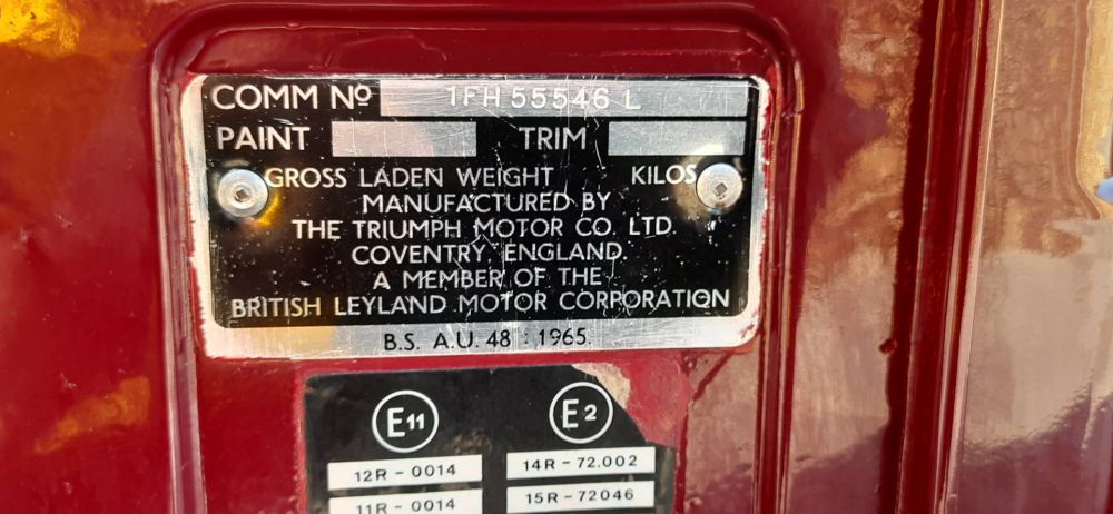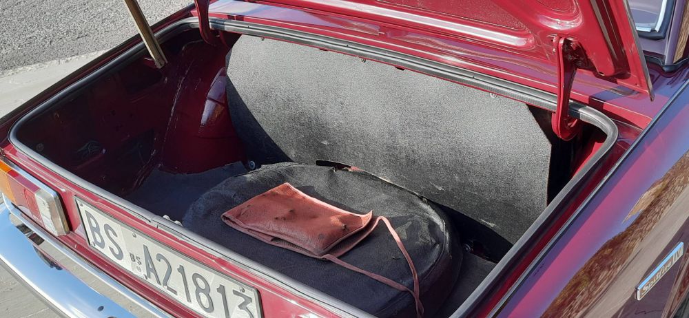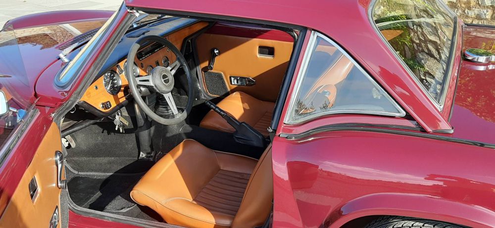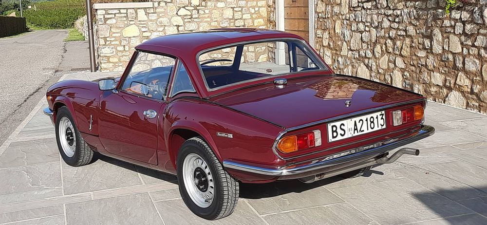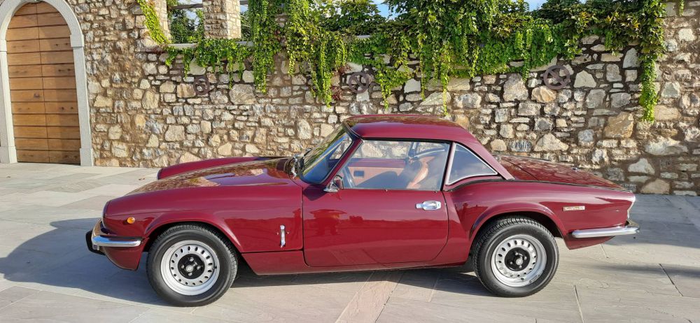 TRIUMPH SPIRFIRE MK IV 1300 1974**** Penultima serie della Spitfire, la vettura inglese nata dallo stile dell’illustre designer Giovanni Michelotti, la MK IV ha già in sé tutte le prerogative che la porteranno fino alla fine della sua gloriosa carriera. La MK IV vide l‘introduzione di una nuova sospensione posteriore, con il montaggio di un perno centrale Swing Spring, in grado di affinare il comportamento stradale senza perdere in rigidità e precisione di guida.  La vettura proposta nel suo particolare Carmine Red 82/CAA fu un regalo ricevuto a 27 anni, nel 1974, a seguito della laurea in medicina, che aprì a questa giovane dottoressa, una lunga carriera in Italia, mantenendo sempre la stessa vettura, ma dovendo cambiare, per modifica residenza, la targa. Questa vettura dalla codifica 1 ante numero telaio identifica una produzione in Belgio, località scelta per produrre alcune vetture per il mercato oltre manica. La vettura, arrivata in questo periodo a 101461 km, è stata ora sottoposta ad un meticoloso tagliando di preparazione, effettuato da rinomata officina specializzata con regolare fattura ed elenco dei lavori eseguiti. Dotata sia di soft top ed hard top mantiene la sua freschezza giovanile del modello a conferma del successo riscosso in 18 anni di produzione.  La vettura è dotata del certificato di produzione e registrazione del British Motor Industry Heritage Trust completo di depliant.