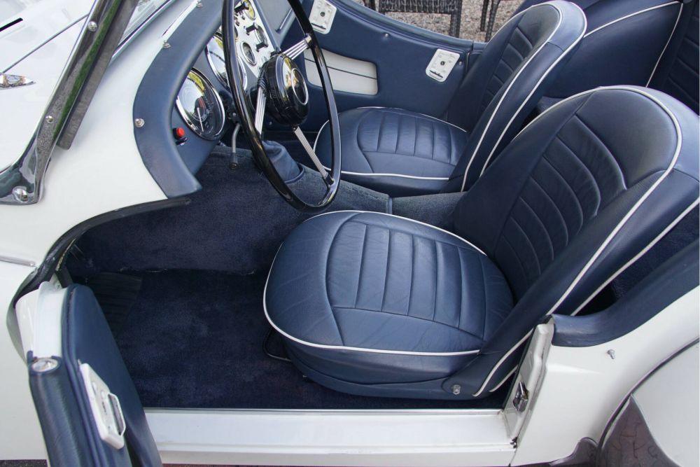 Inside, it's evident that everything looks well cared for. The invoices show that this Triumph received new upholstery during the restoration work. It is in excellent condition, as is the dashboard and carpets.