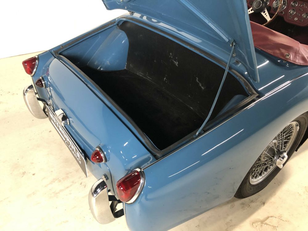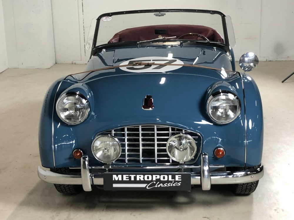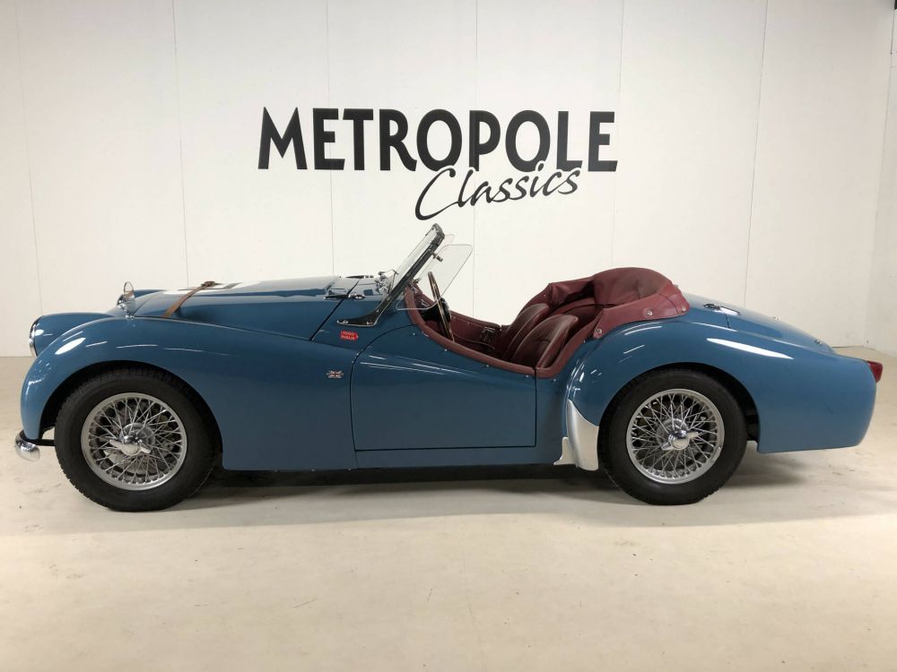 The TR3 presented here is a body-off restored in the color Cottswold Blue with a red leather interior. The engine, gearbox and overdrive have been overhauled by Van Giersbergen. There are also two Weber DCOE40 carburettors, which increases the power to 126 hp. Furthermore, it has uprated disc brakes. You also have the option to register this car in the Mille Miglia because it is a matching car from 1957! There are also 4 black spoke wheels with good tires. A wonderful opportunity for the serious enthusiast. The car has a Dutch registration.