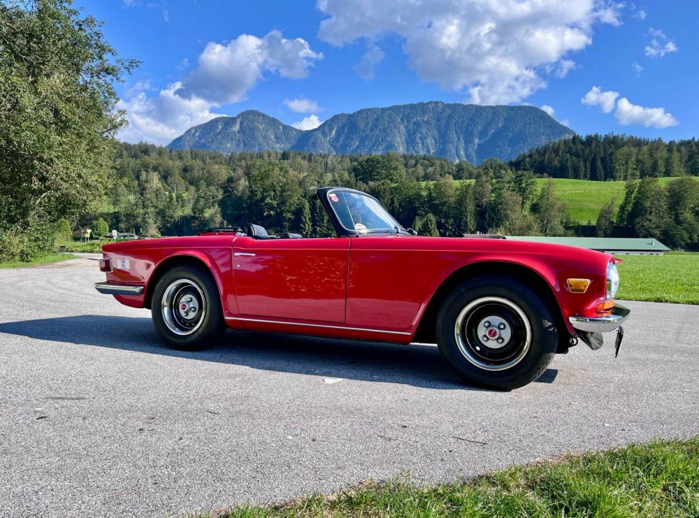 Der TR 6 eigente sich hervorragend als preiswerter Einstieg in die Oldtimerszene. Viel Fahrspaß, einfache, aber zuverlässige Technik, und ein wunderschönes Design. Dieser Triumph kam bereits 1989 nach Österreich und wurde seitdem sehr gut gepflegt und gewartet. Der Innenraum gefällt durch die KOmbination von schwarzen Leder mit hellen Wurzelholz. Der kernige 6-Zylinder Motor zieht kraftvoll an und ist auch akustisch ein Genuss. Der TR6 ist als historisches Kraftfahrzeug zugelassen und bekommt vor der Auslieferung noch ein frisches Service und ein neues Pickerl (TÜV).