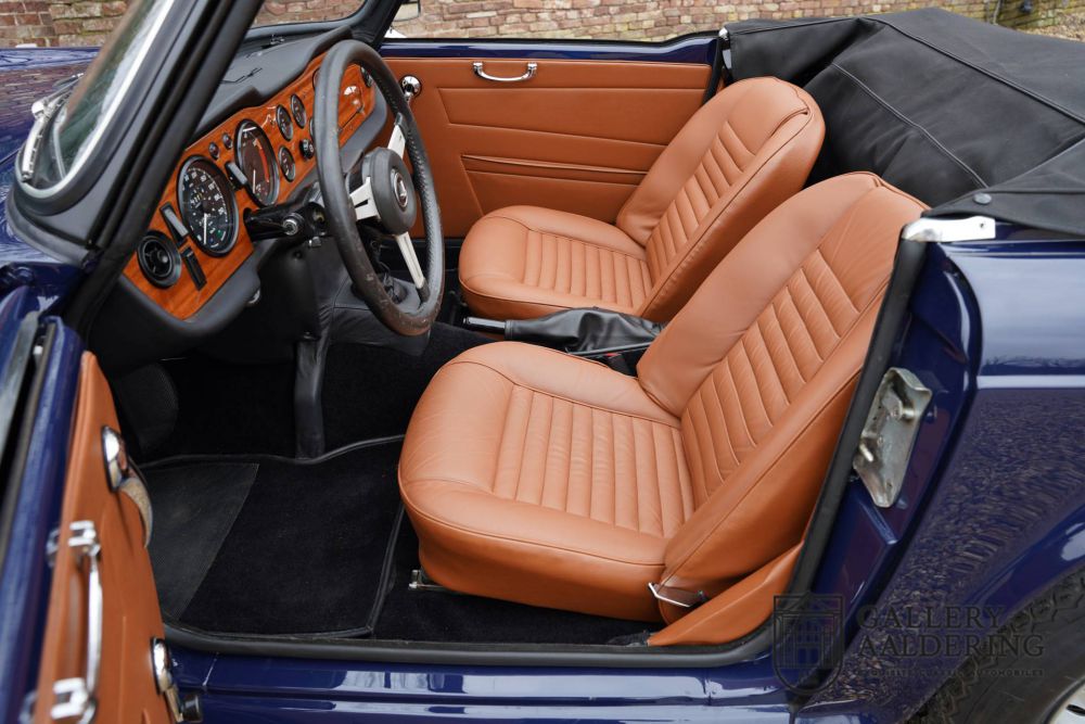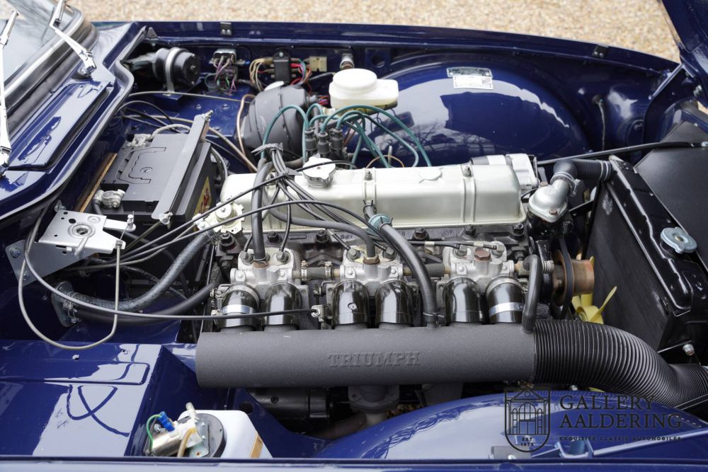 And what a drive this Triumph gives. With its fully rebuilt 2.5 litre straight-six delivering 150 hp, the car is more than sporty. The engine is coupled to a manual 4-speed gearbox with the always sought-after overdrive option. What joy this car gives when touring the countryside.
