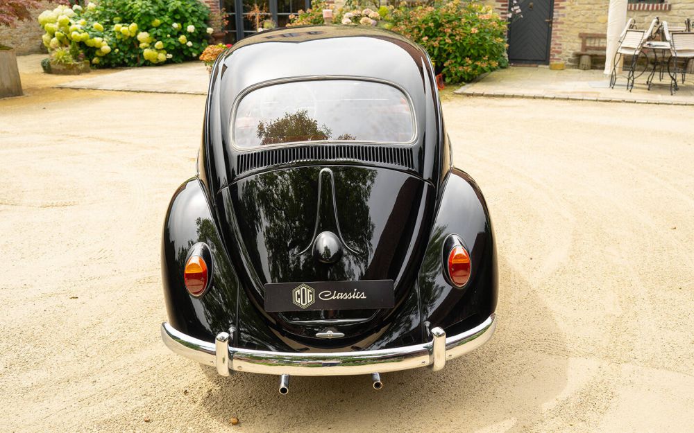Dieser in schwarz bestellte Käfer wurde am 23.06.1960 in Lissabon das erste Mal zugelassen. Demnach handelt es sich hierbei um ein Export Käfer. Laut den uns vorliegenden originalen Zulassungsbescheinigungen vom Erstbesitzer aus 1960 und 1985 lautete das Kennzeichen OP-53-54. Erst im Jahre 2014 erscheint auf einem Dokument für eine technische Inspektion in Santa Tirso bei Porto ein anderes Kennzeichen. Der Käfer wurde anschließend nach Deutschland verkauft und vor 2017 aufwendig restauriert. Dazu gehörte die Erneuerung der gesamten Technik und Elektronik, Eisstrahlarbeiten am Unterboden, eine neue Gesamtlackierung, Neue Chromteile und eine Überarbeitung des Innenraumes. Seit der Restaurierung stand das Fahrzeug in einer großen Käfersammlung und wurde nicht bewegt. Nun ist der Käfer aber wieder fahrbereit und freut sich auf die nächsten Landstraßen. Uns liegen die alten originalen Zulassungsbescheinigungen aus Portugal vor, ein Gutachten von 2017 welches kurz nach der Restaurierung angefertigt wurde, sowie einige wenige Bilder der Restauration und die aktuelle deutsche Vollabnahme.