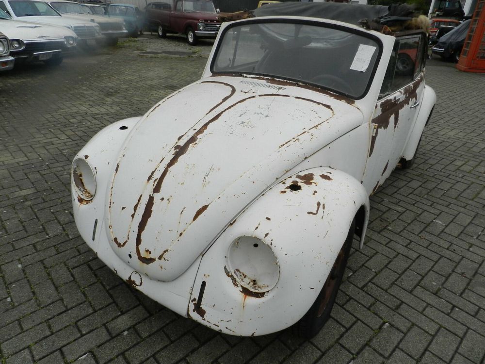 Wie man auf den Bildern sieht ist der Käfer zerlegt und Kofferraum und Innenraum sind voll mit Teilen, teilweise auch neue wie z. B. die Stoßstangen. Vieles ist doppelt, auch liegen Limousinen Teile bei die ich in der Scheune gefunden habe und eingepackt habe. Vollständig ? Keine Ahnung, aber alles wichtige ich vorhanden.