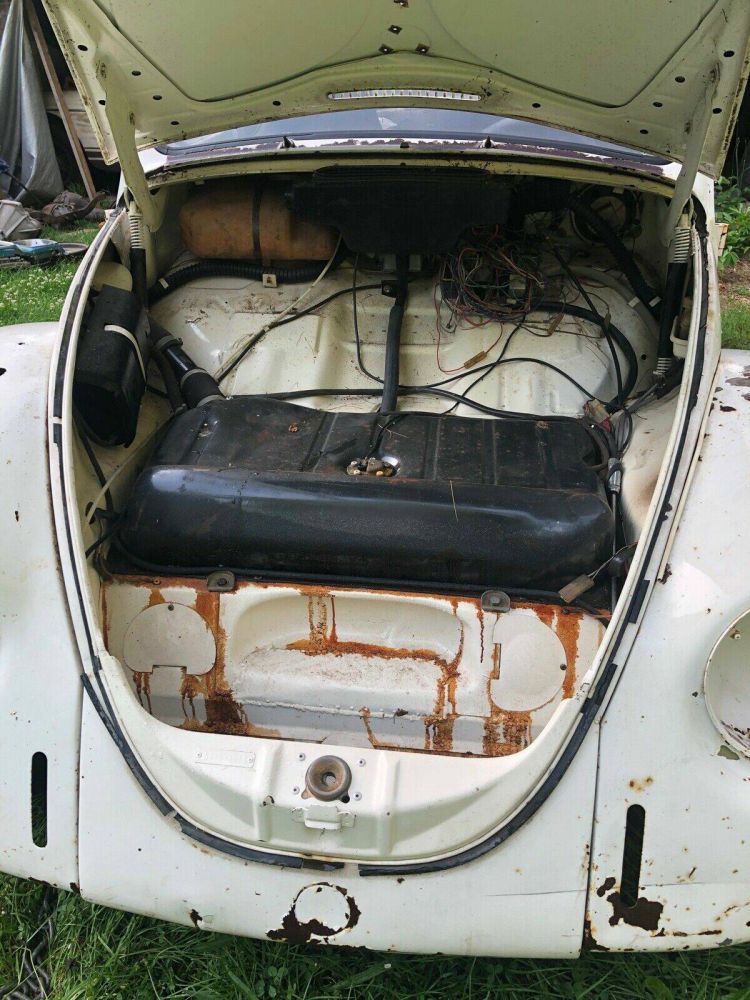 Hat einen 1600 ccm AE Motor (fest) der von 1970 bis 1971 in den USA Käfern verbaut wurde. Sehr seltene Halbautomatik und somit die begehrte Schräglenkerachse. Wer mit der Halbautomatik nicht leben kann, der Umbau geht einfach und ein passendes, von mir noch gefahrenes und getestetes Schaltgetriebe kann ich für meine Kosten von 300.- EUR beisteuern.