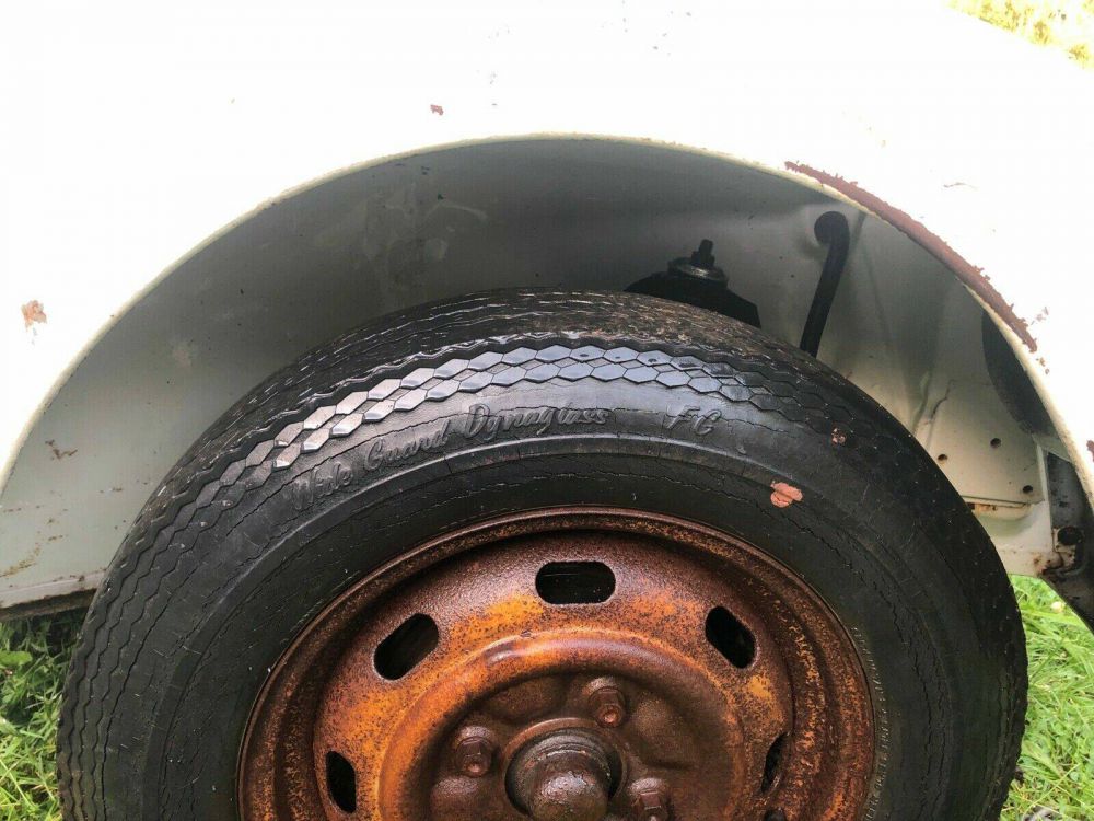 Verdeck und Holz Spriegel haben es hinter sich aber Gestänge ist noch gut erhalten. Heckfenster mit Stahlrahmen ist noch vorhanden. Blech ist nicht schlecht, Bodenwannen hinten unterhalb der Batterie natürlich wie immer durchrostet. Alle sichtbaren Roststellen an der Karosserie sind nur oberflächlich und nicht durchgerostet. Sehr gutes Spaltmass. Ein paar kleine, bereits geschweißte (gut gemacht) Stellen (siehe Bilder). Einstiege, Schwellen, Reserveradwanne, Endspitzen, etc. gut bis sehr gut erhalten. Ein Video von Unten hier: klassik-garage.de